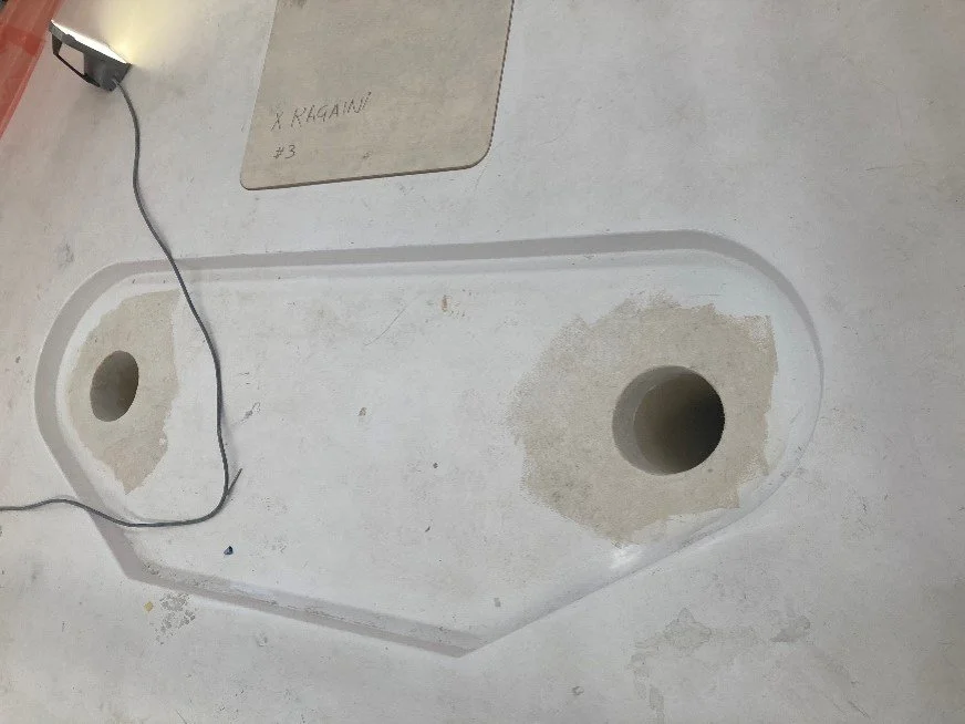 •Touch ups to gelcoat on aft areas,