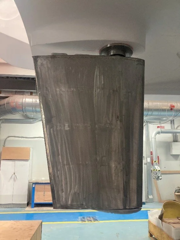 •Stern thruster drive unit is installed, propeller yet to be installed,
