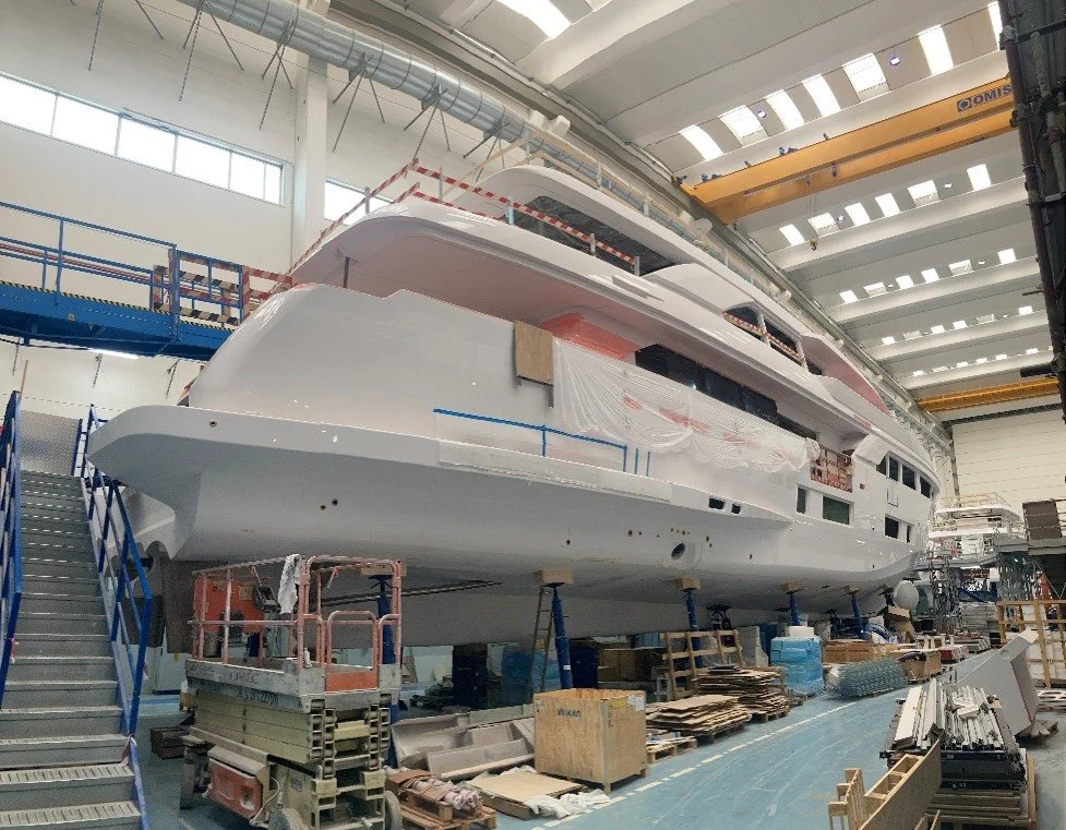 •The outfitting is taking place at the Custom Line/Ferretti facilities in Ancona.