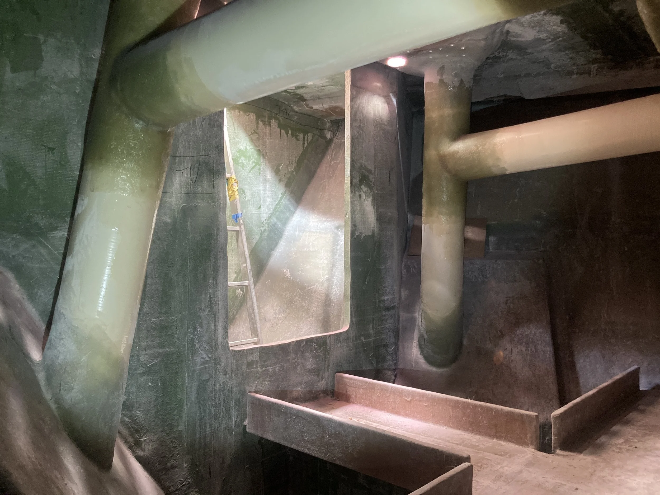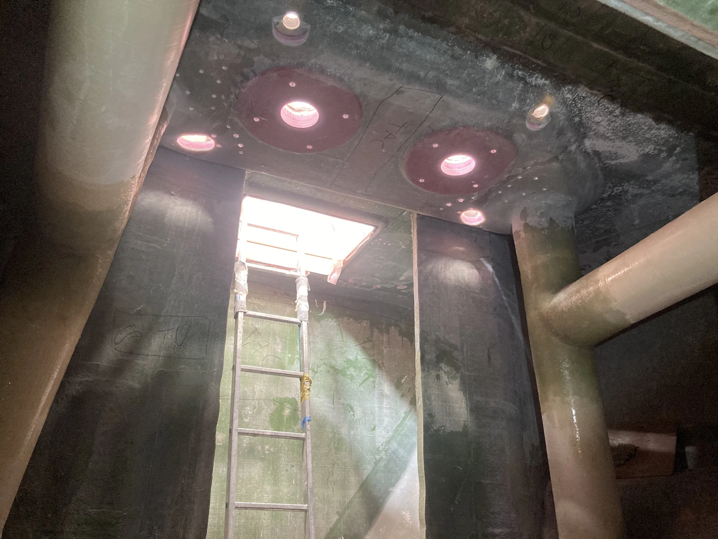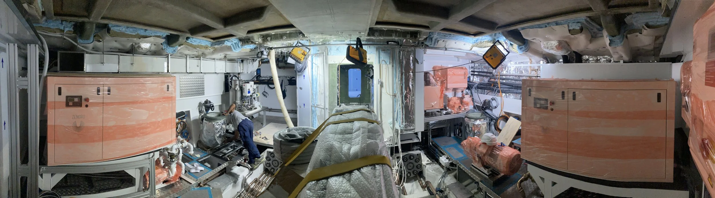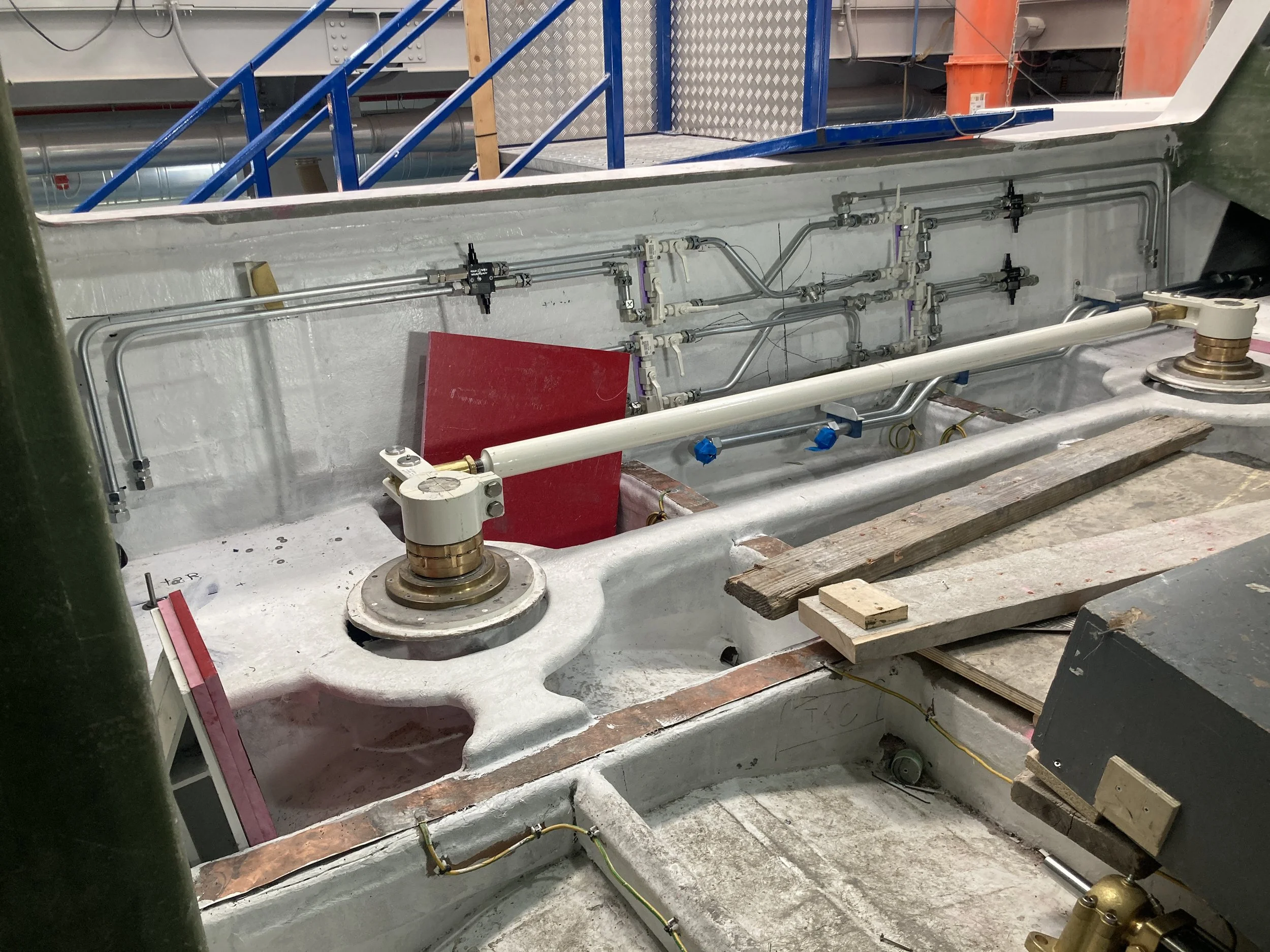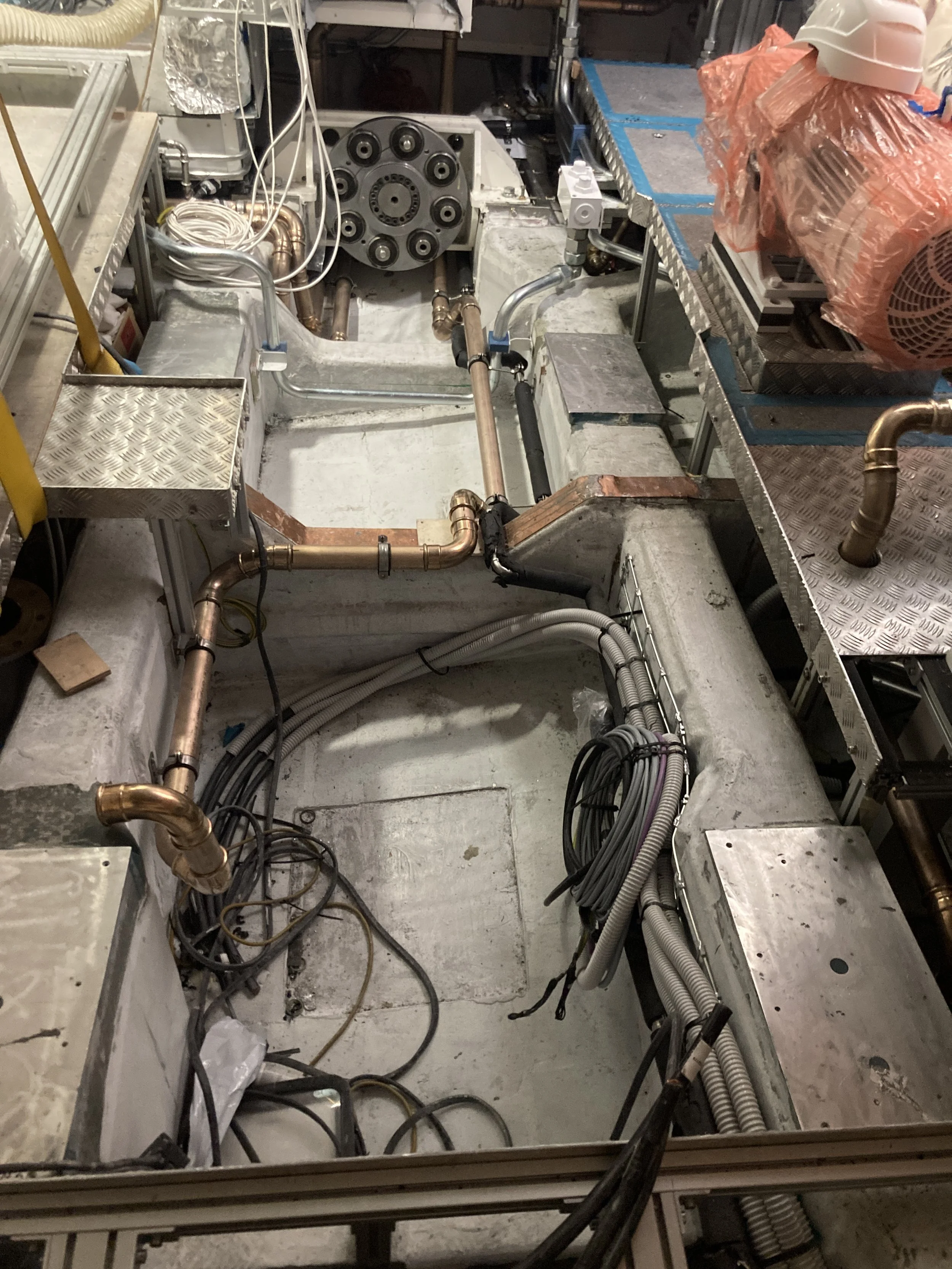 • Piping in lower bilges has been installed and other piping is being installed.