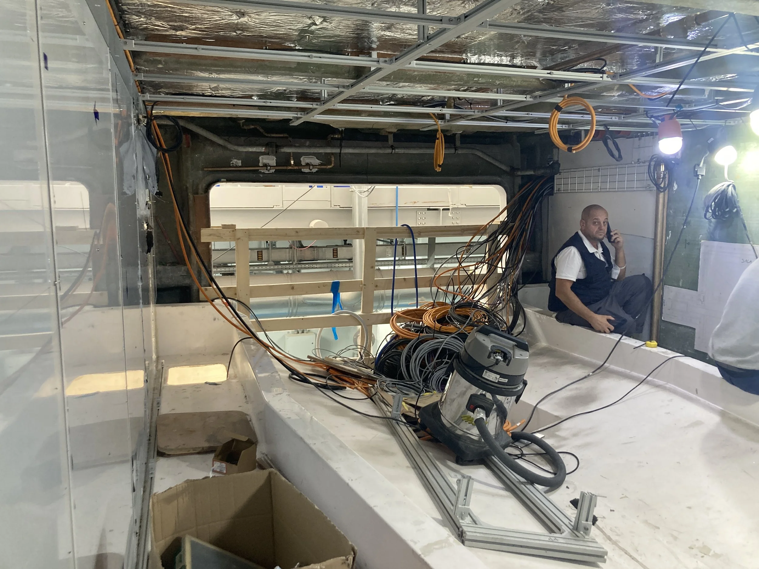 • Alucobond white finish is being installed on walls and bulkheads.