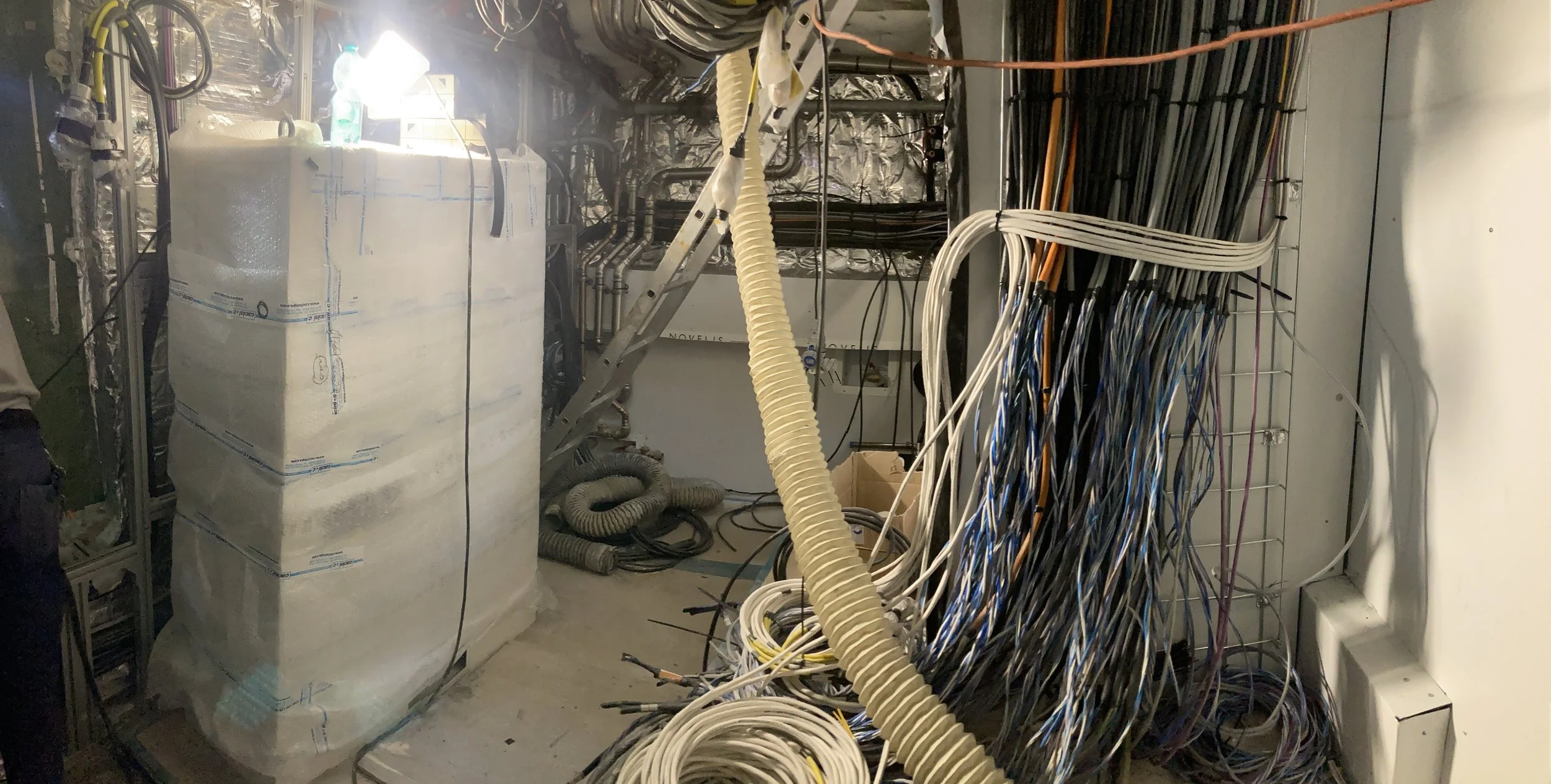 • Electrical cabling is being routed and terminated.