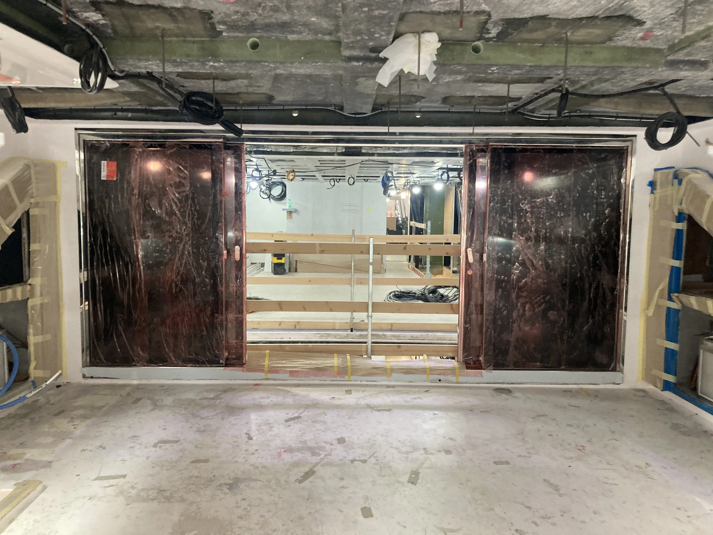 • Apparatus for watertight doors has been installed and doors are now in place.