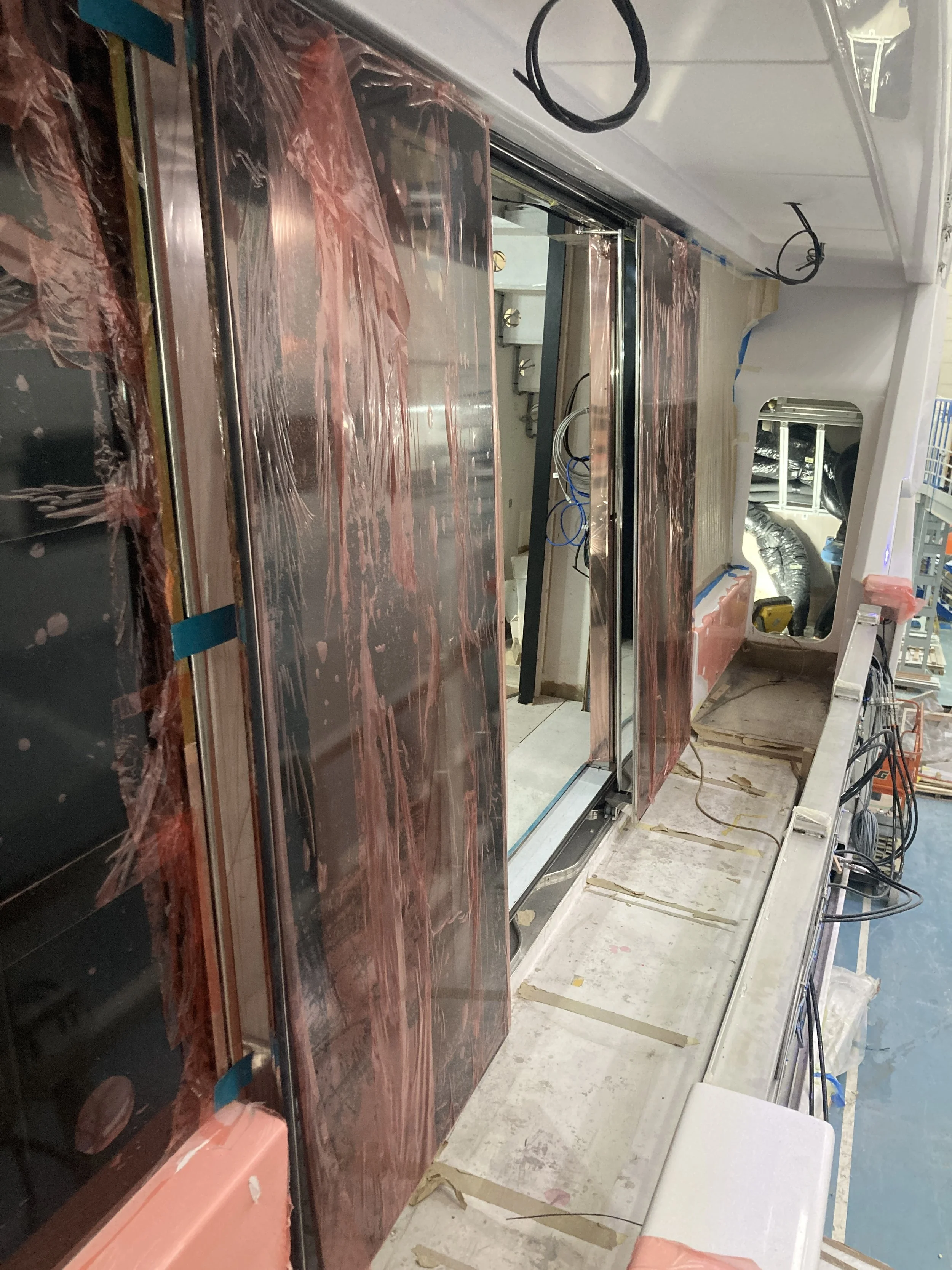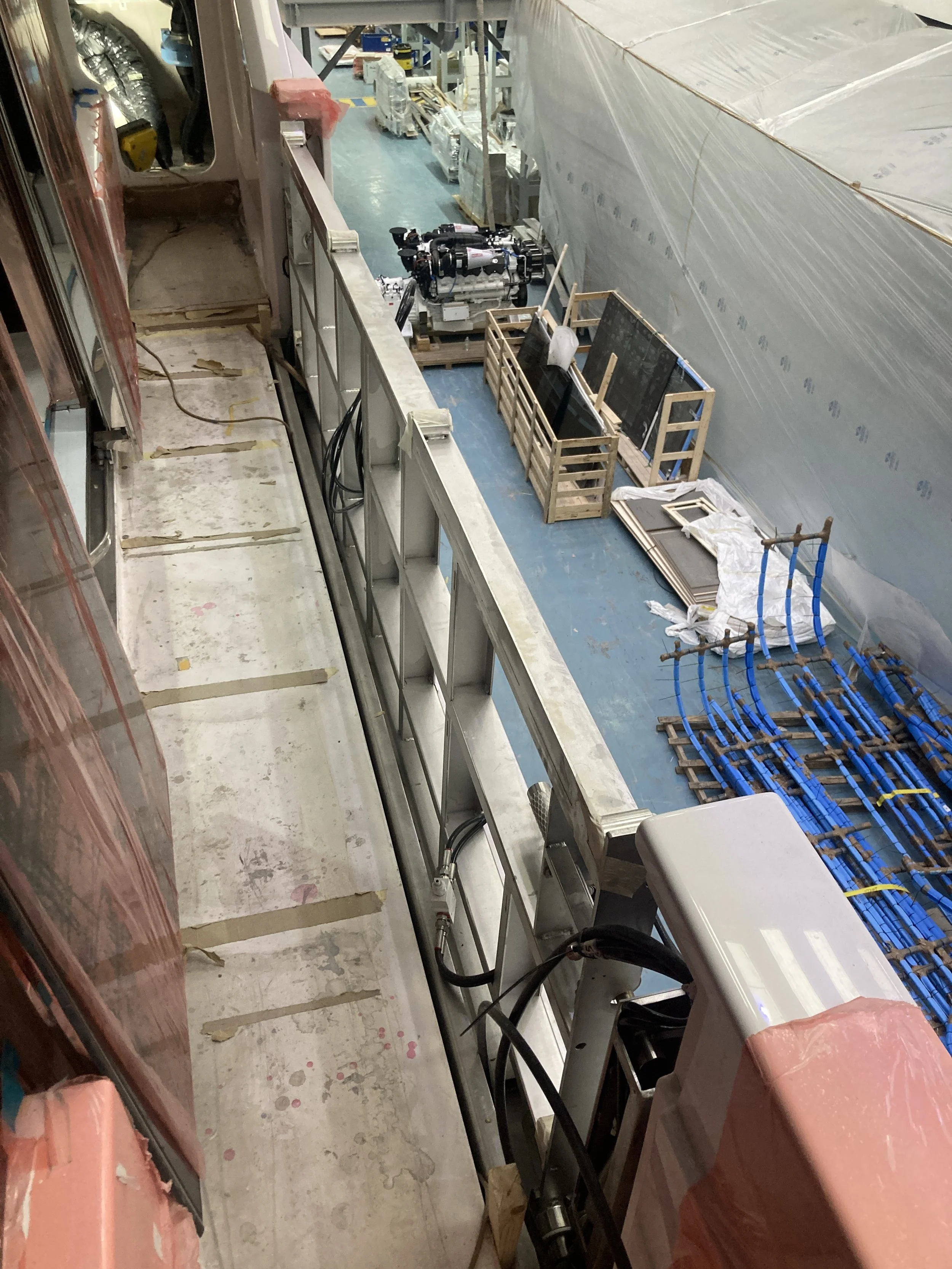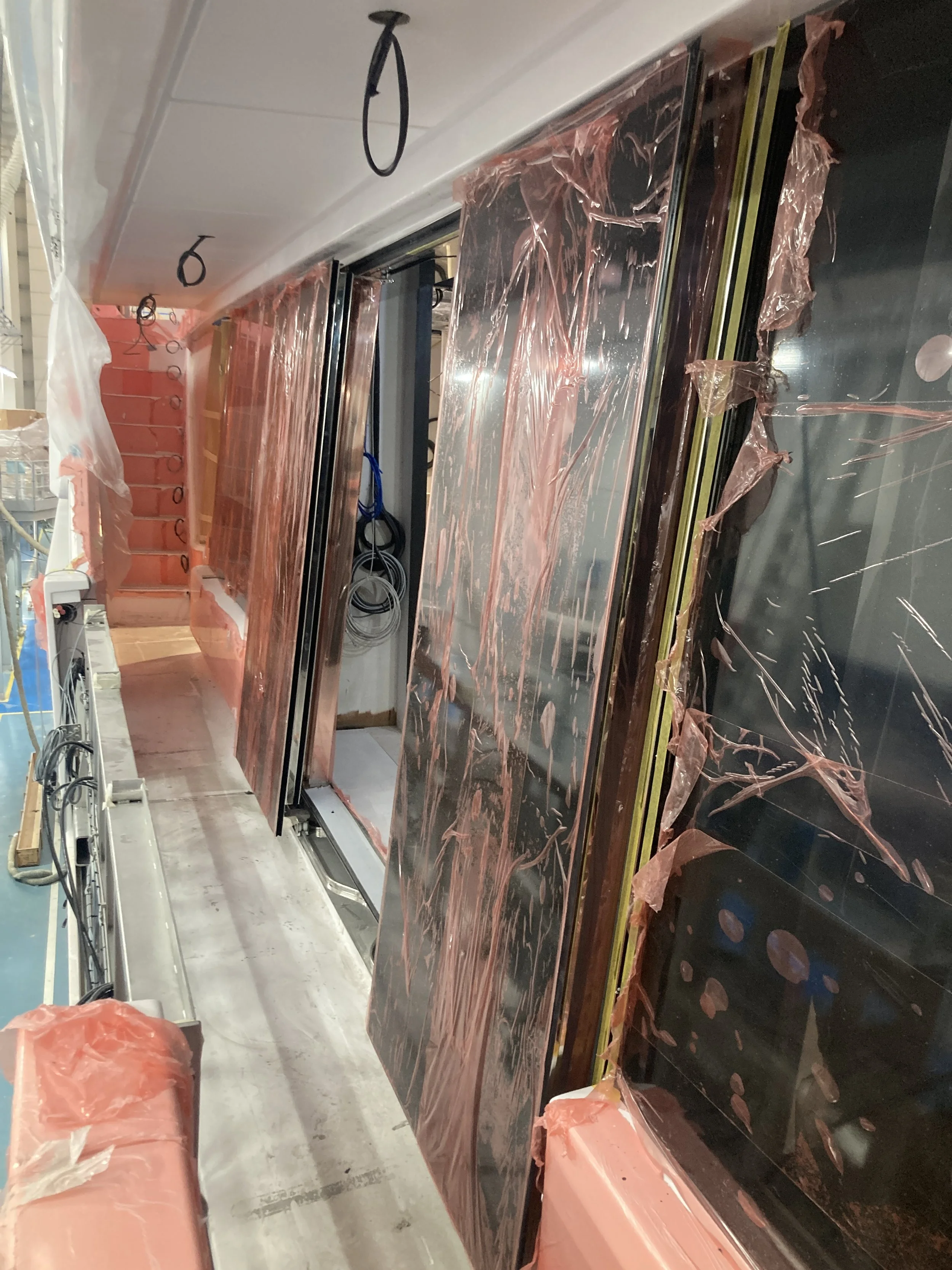 • There have been a series of important embarkations on the boat. Sliding doors, side balconies, windlasses and capstans, engines and generators, have all now been embarked and ready give way for outfitting of respective carters, cabling, piping and ducting from all subcontractors to proceed,
