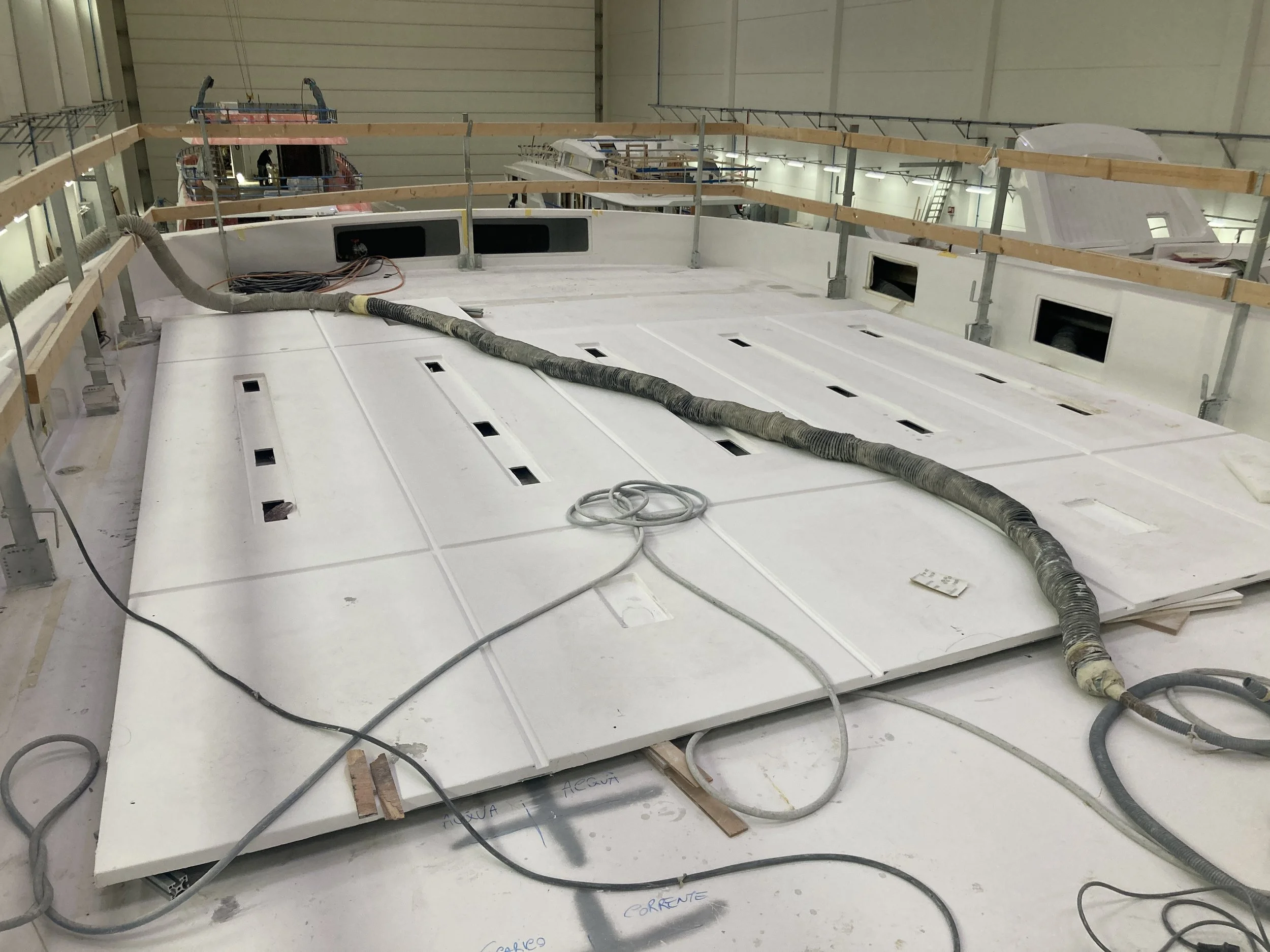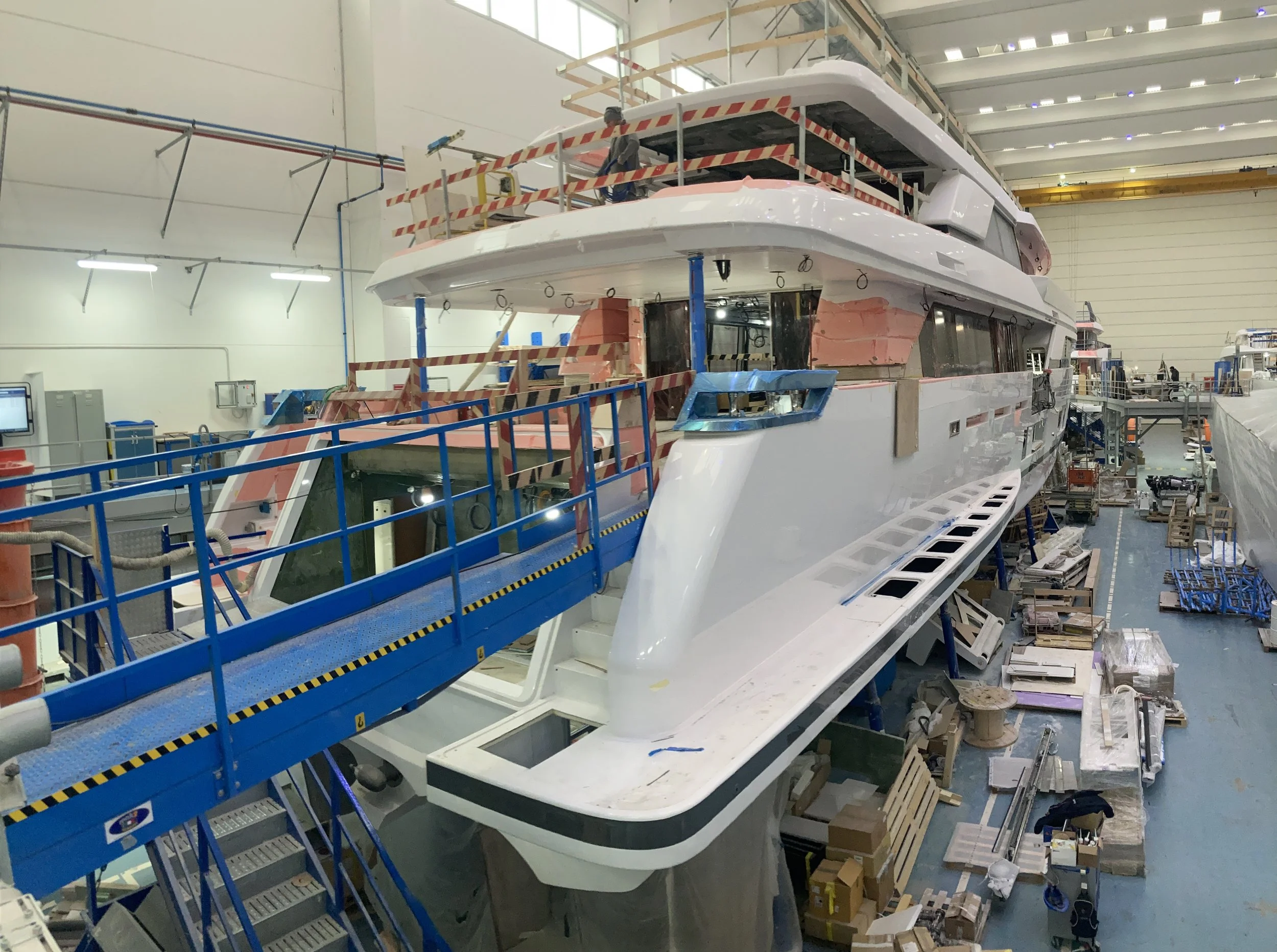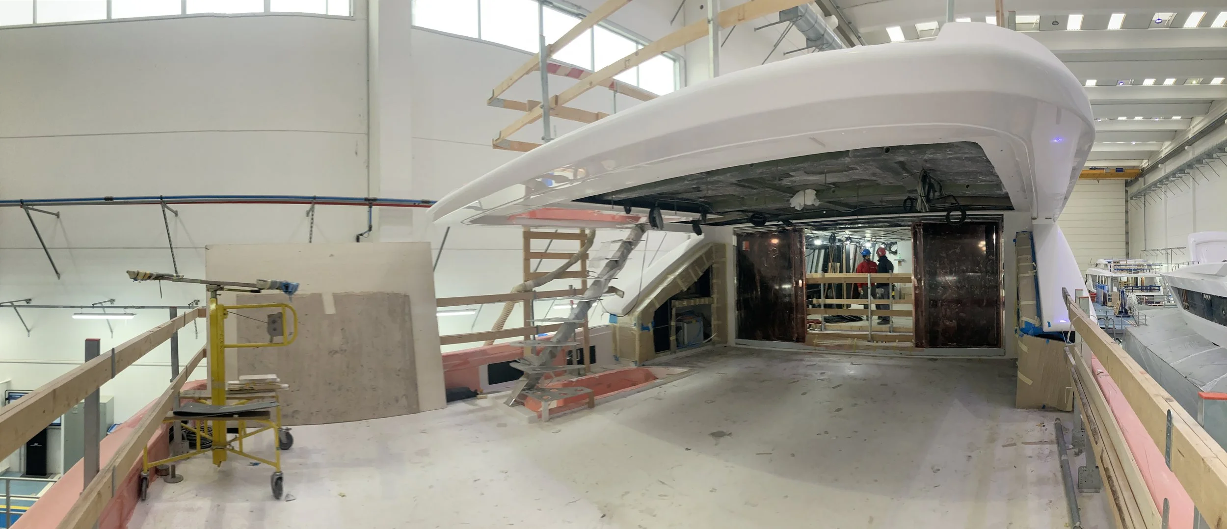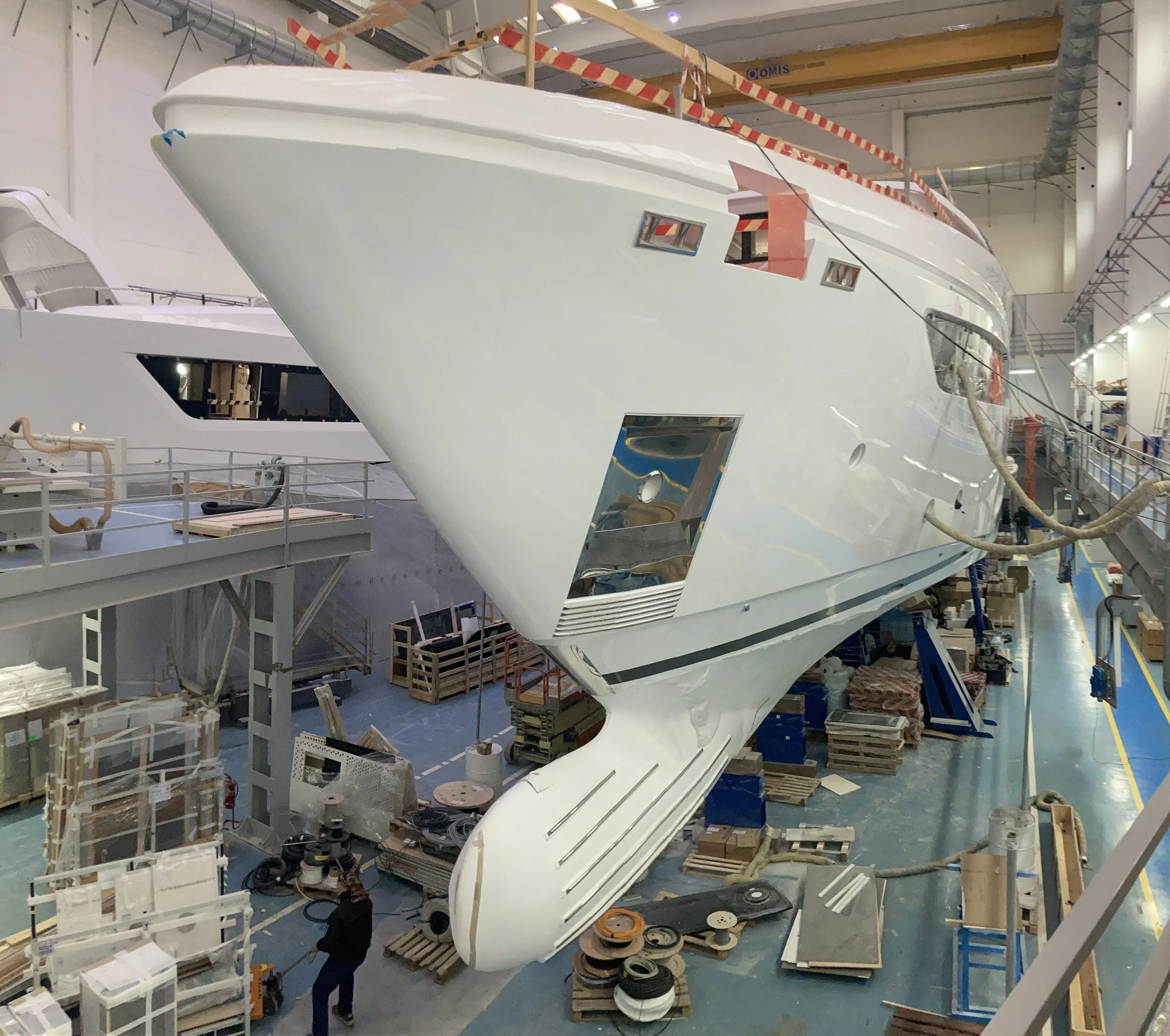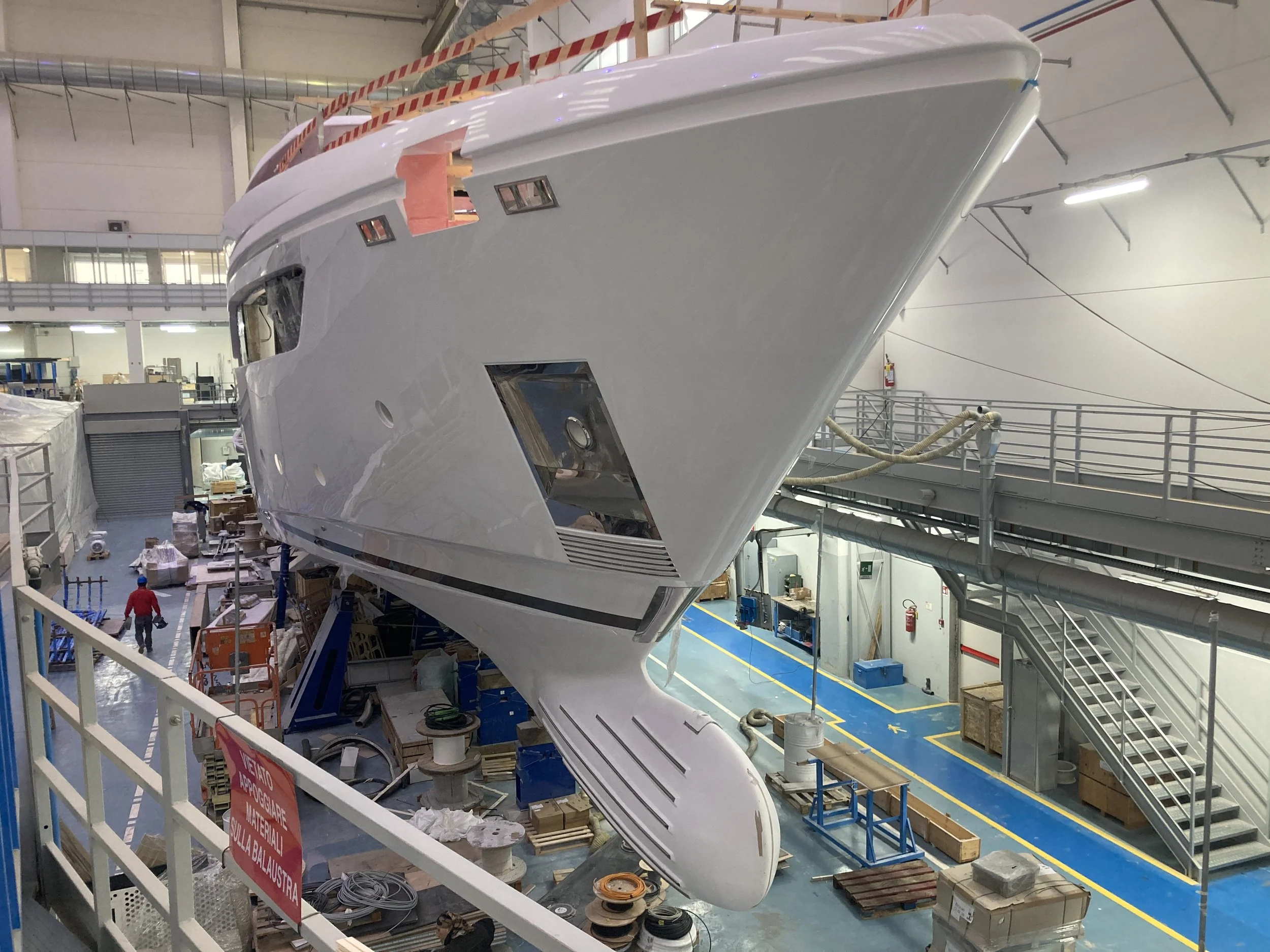 • The outfitting is taking place at the Custom Line/Ferretti facilities in Ancona.