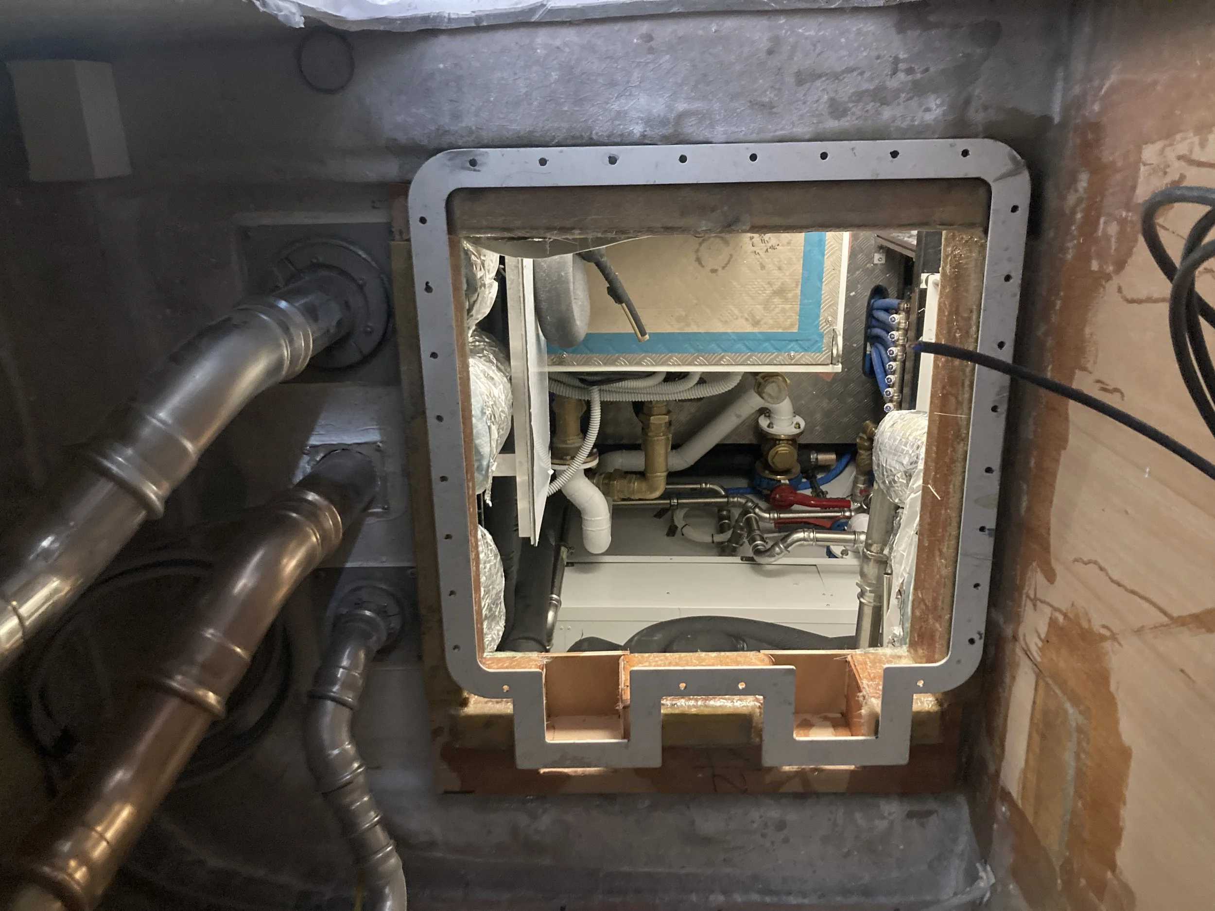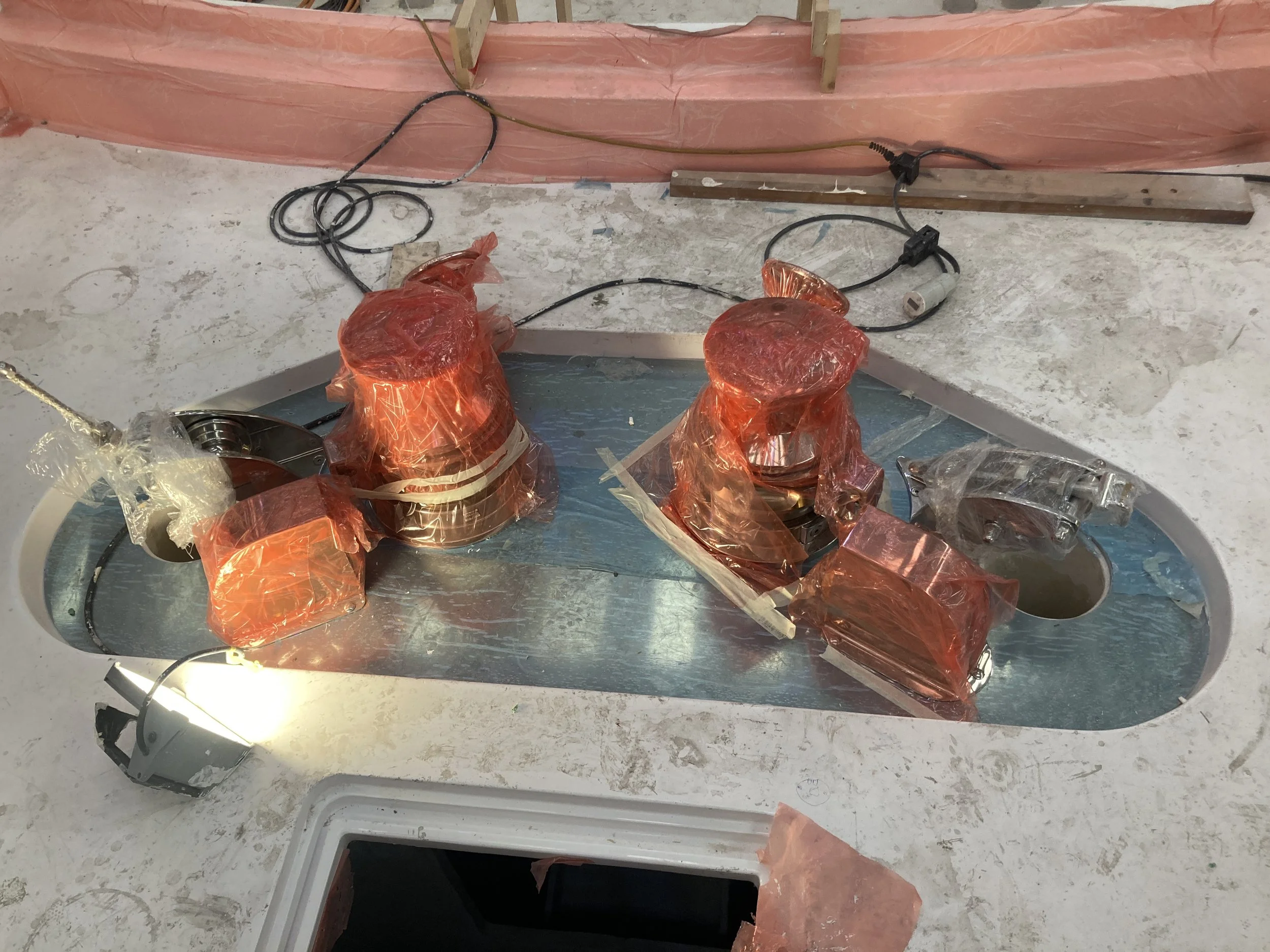 • Windlass motors have been installed, including hawse pipe for chain to lead into the locker, piping for chain wash and electrical connections,