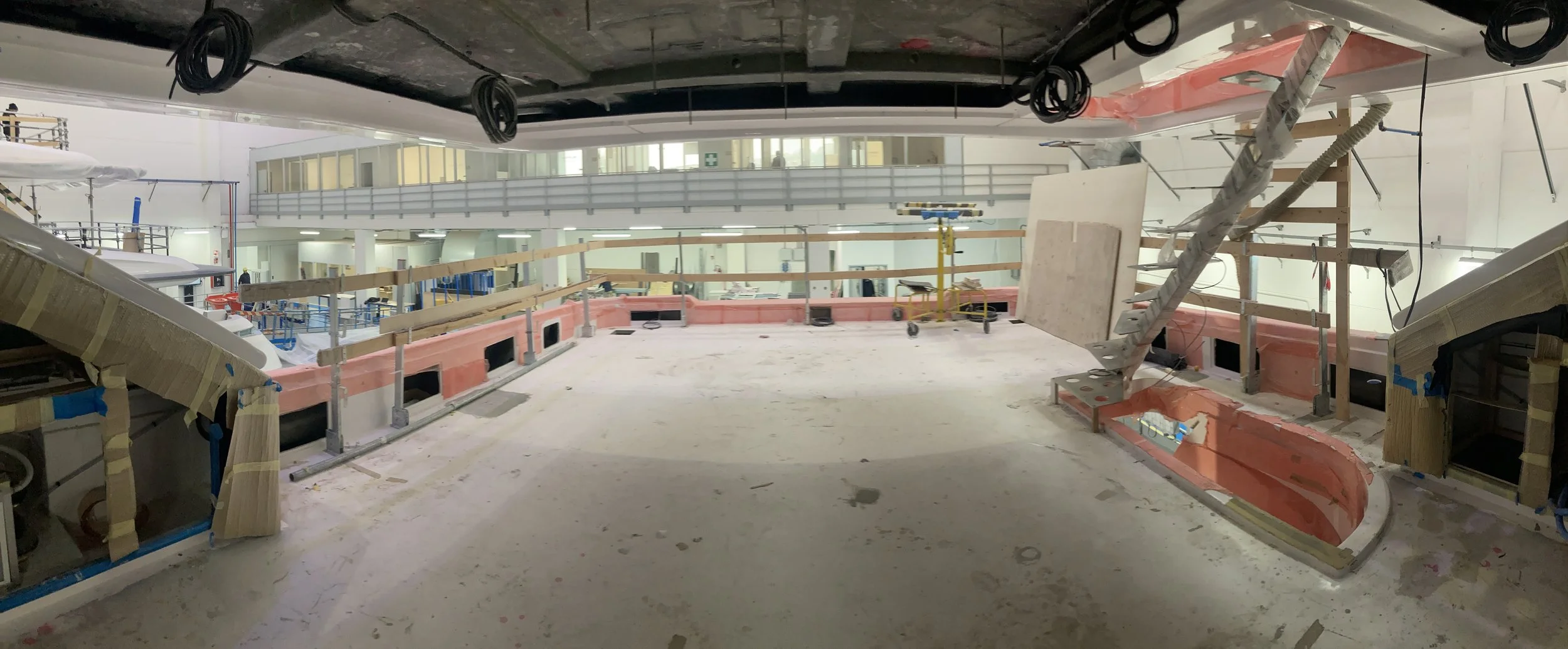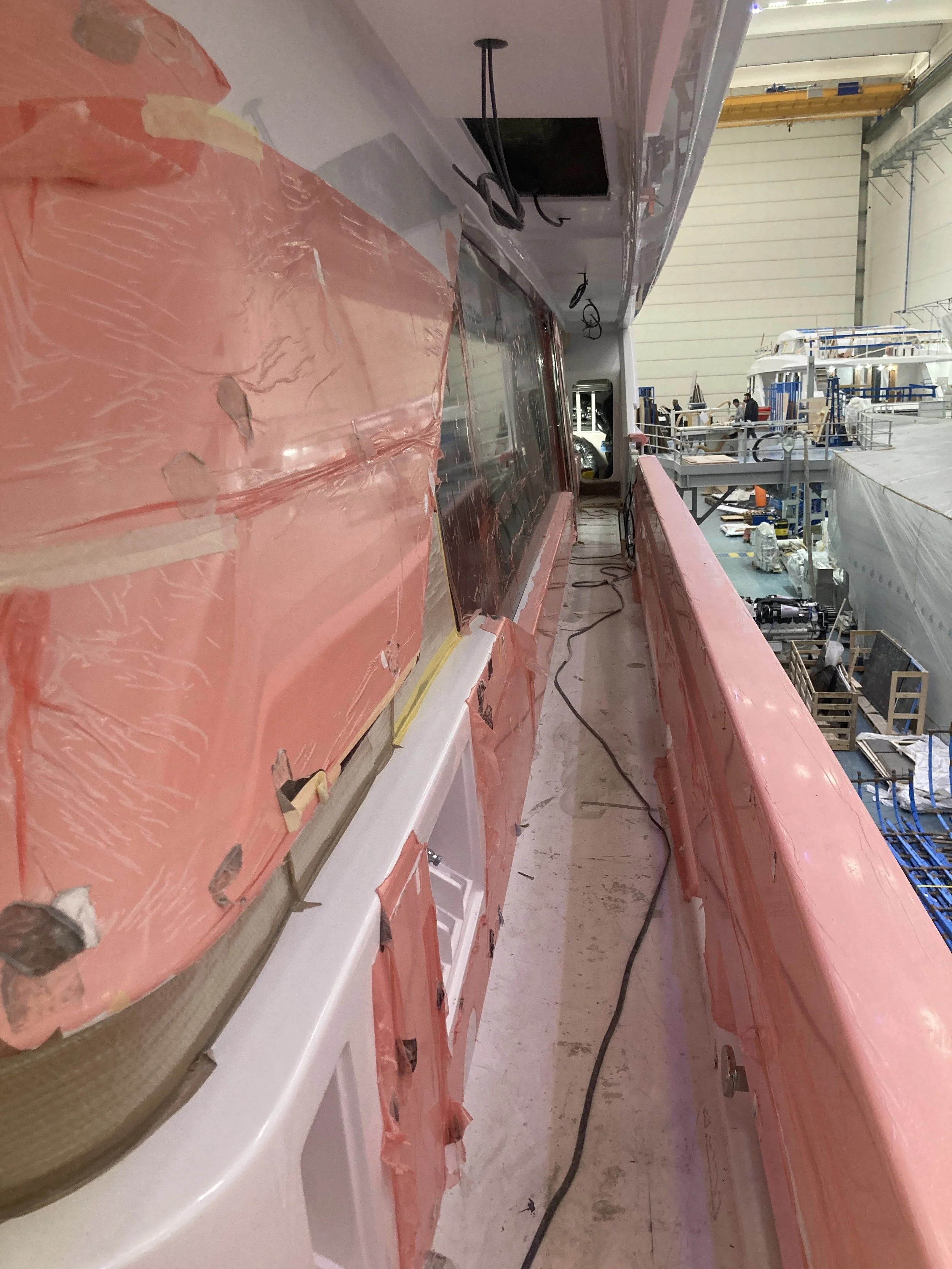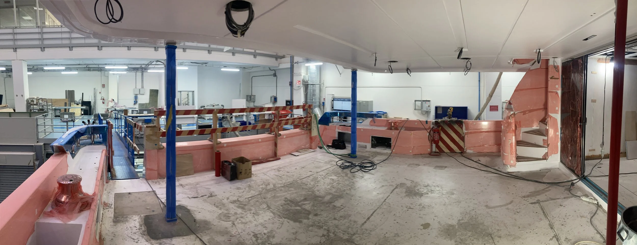 • The technical spaces in the rescue boat area are being outfitted (fans, piping, ducting, electrical cabling),