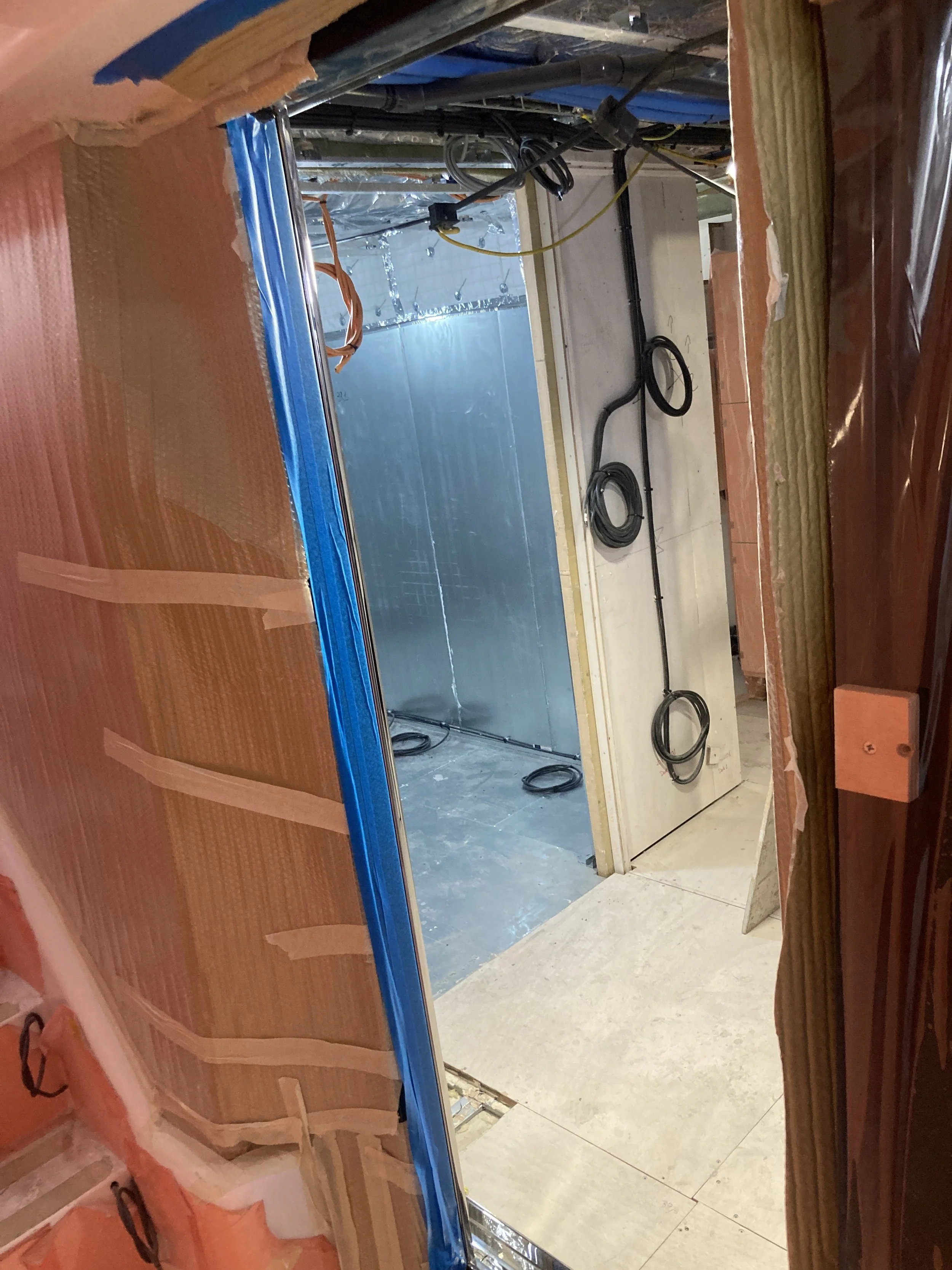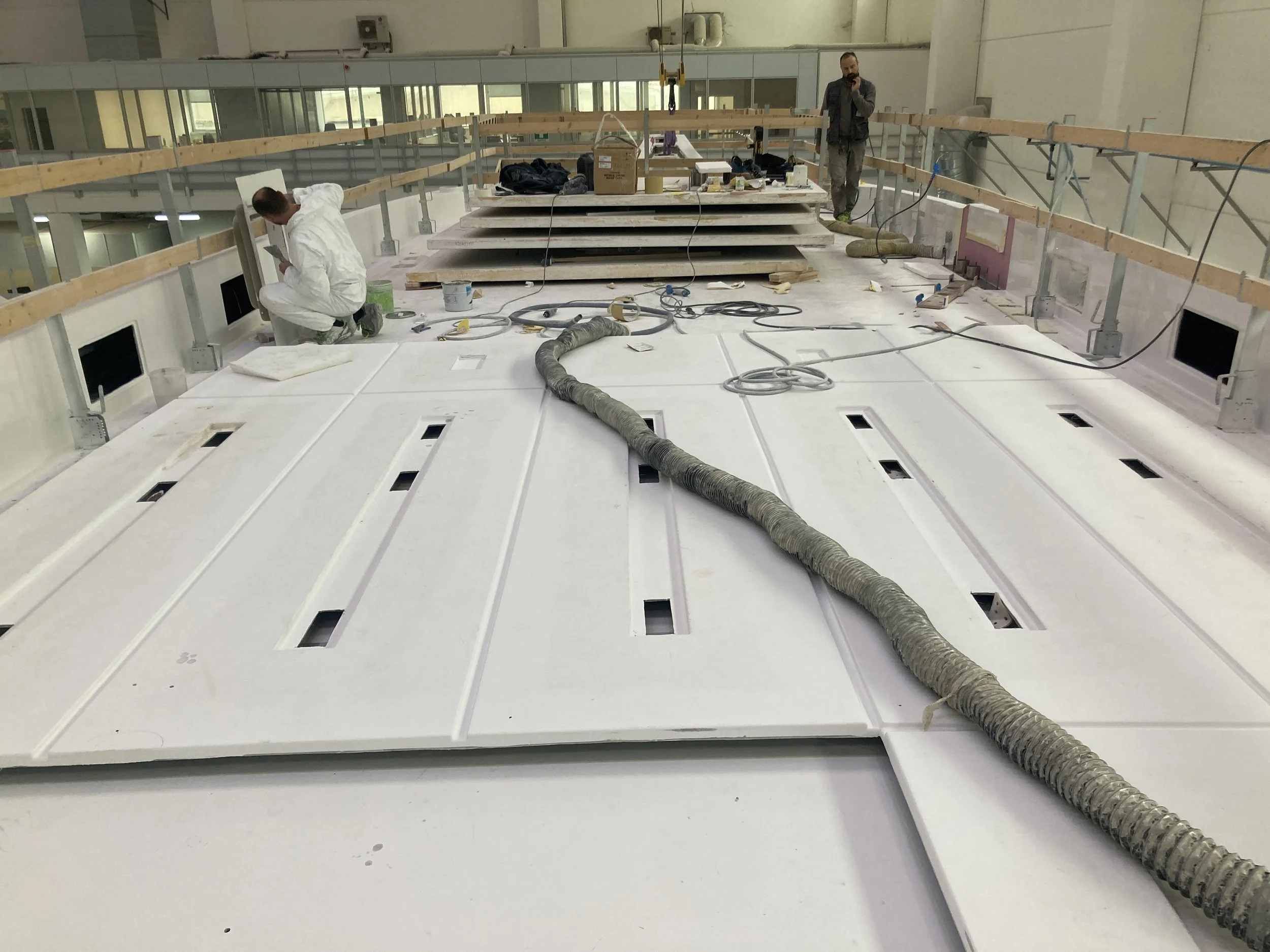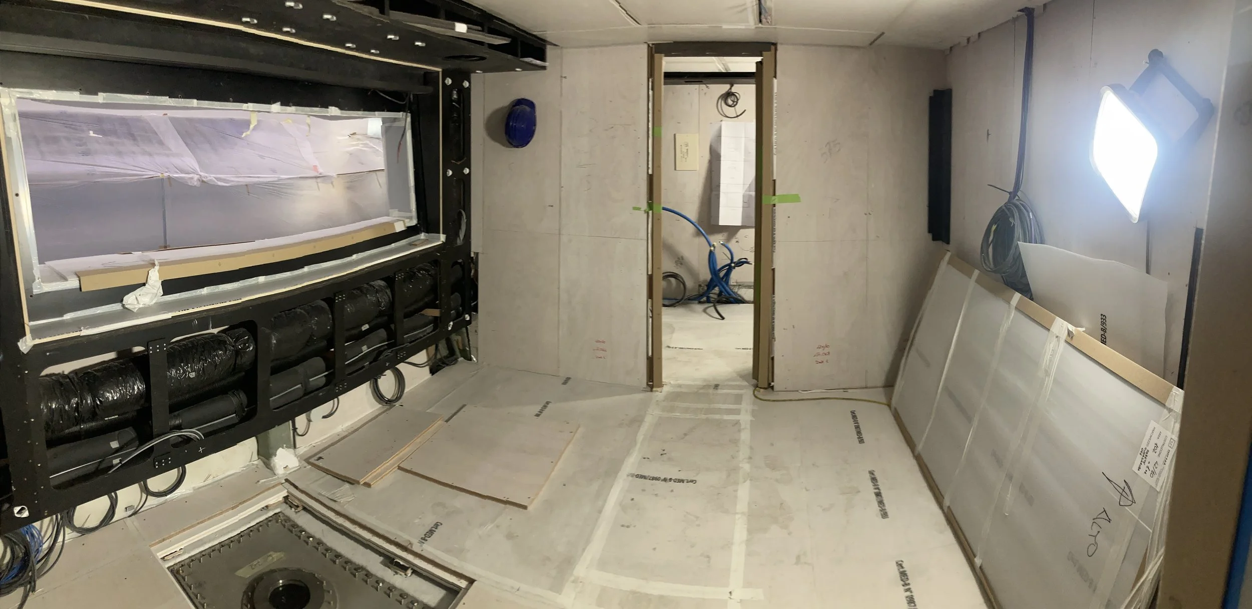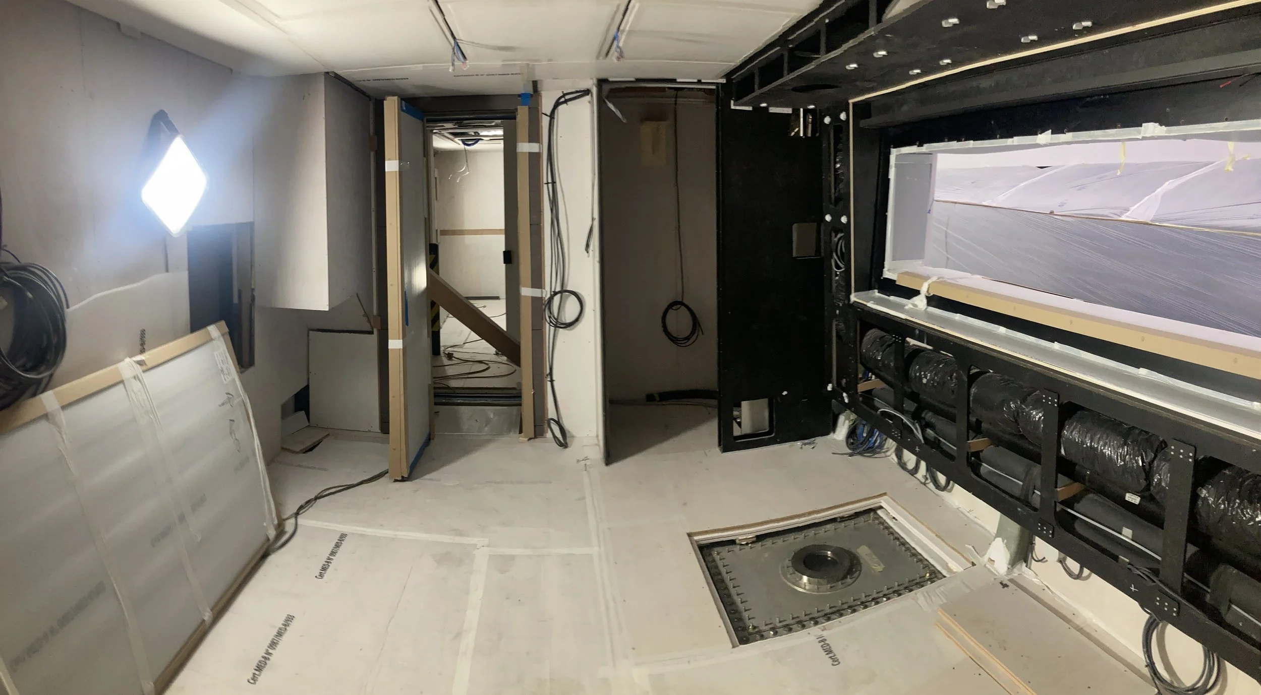 • The technical spaces in the rescue boat area are being outfitted (fans, piping, ducting, electrical cabling),