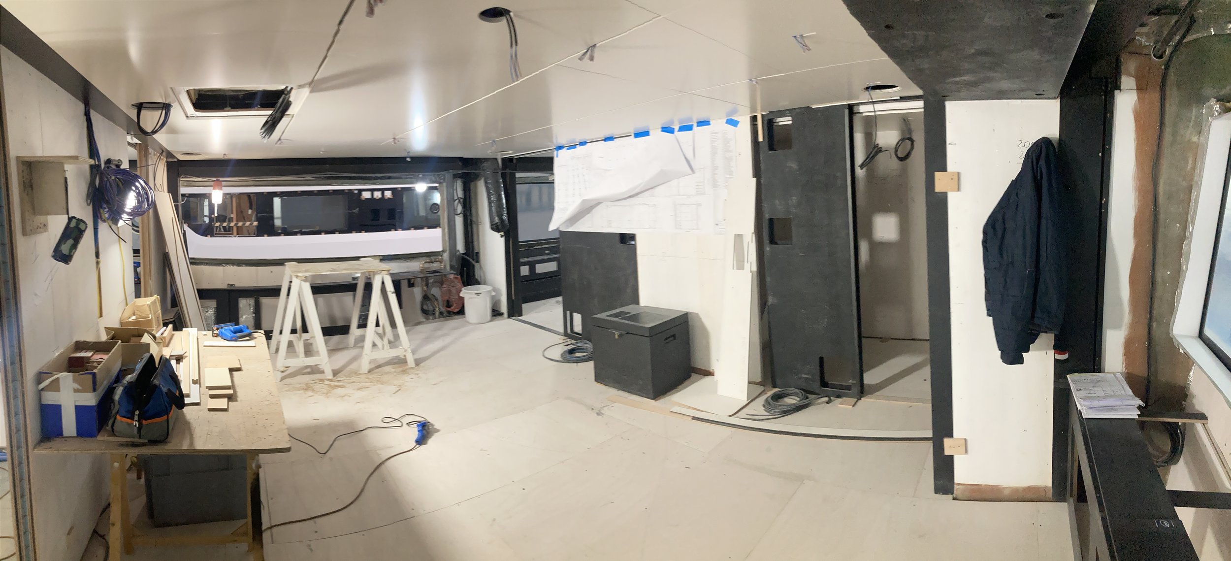 • Works have been halted in the main deck lounge due to the installation of engines over these few days.