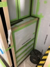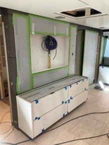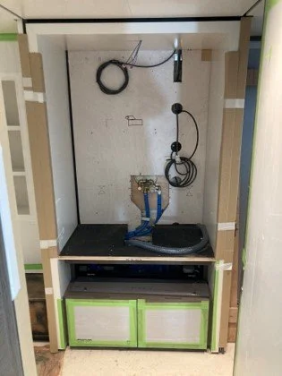 •Washbasin furniture is now installed and ready to house the washbasin and faucetry.