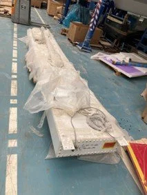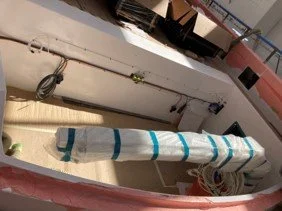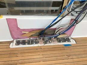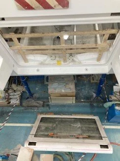 •Windows are all installed except for the aft lower deck guest cabin on STBD side, this is being used to get the final parts of the cabins into the boat,
