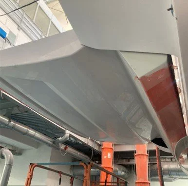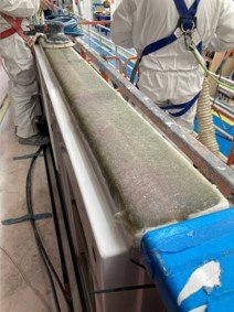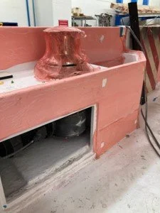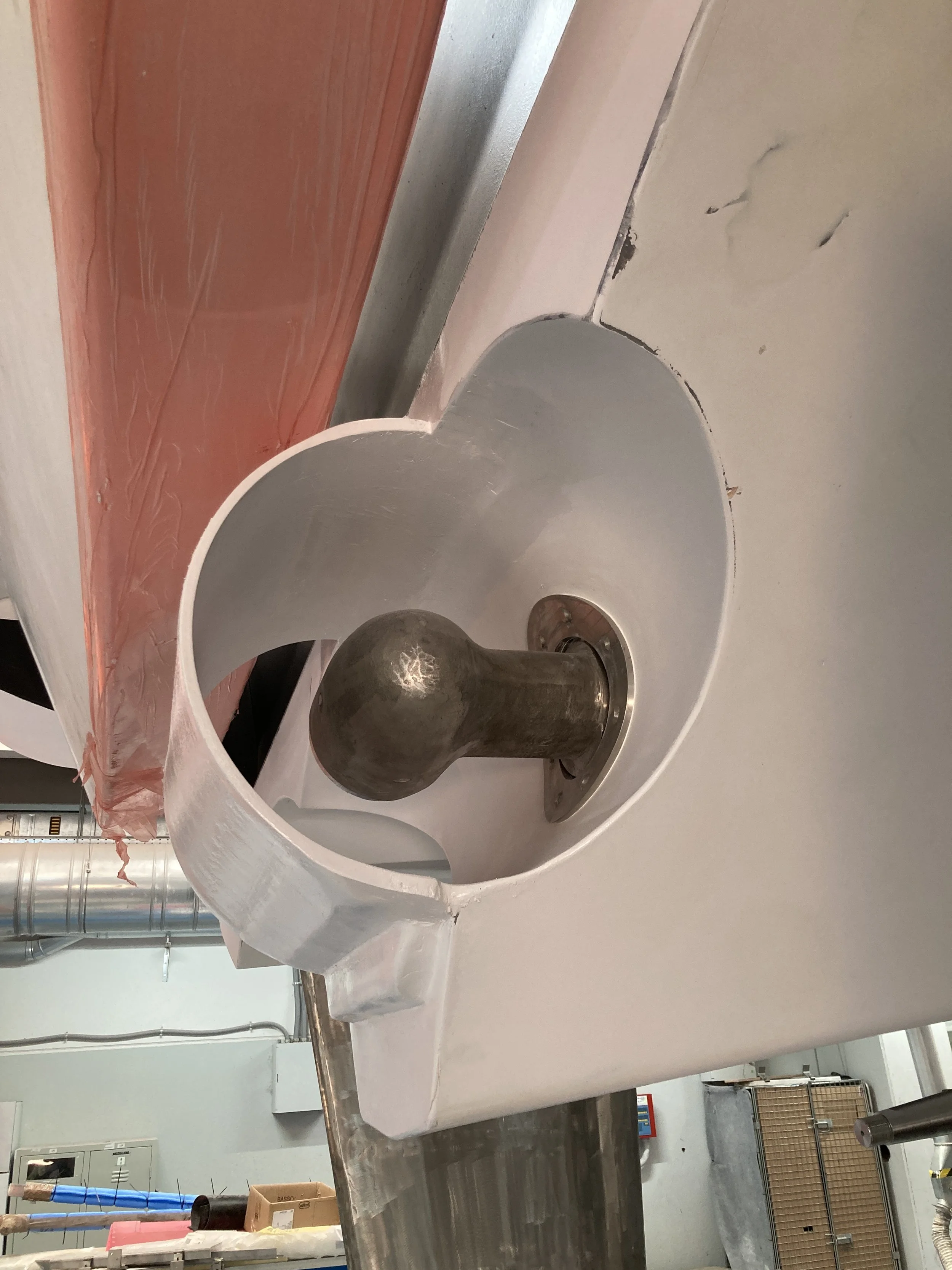 Exhaust cowlings have now been fully laminated to the hull. They are missing the fibreglass cover to be installed little prior to launching.