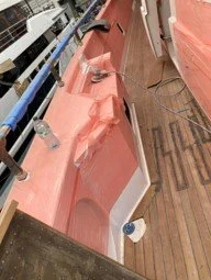 •Teak decks have now been laid on the fwd areas of the yacht,