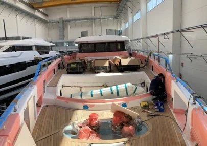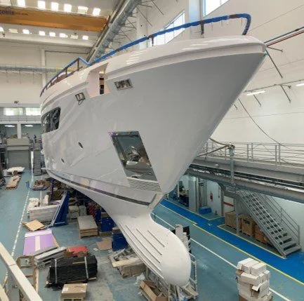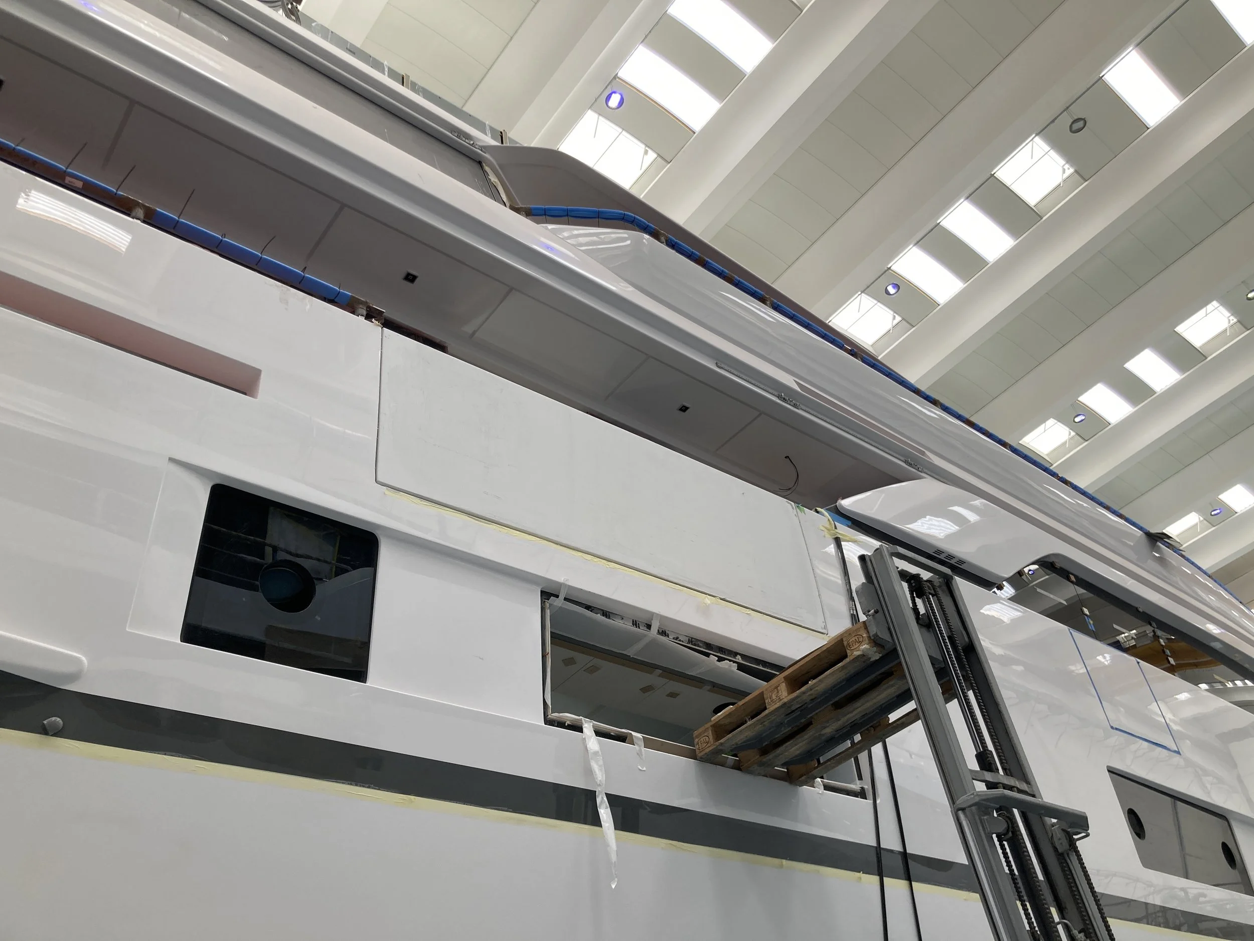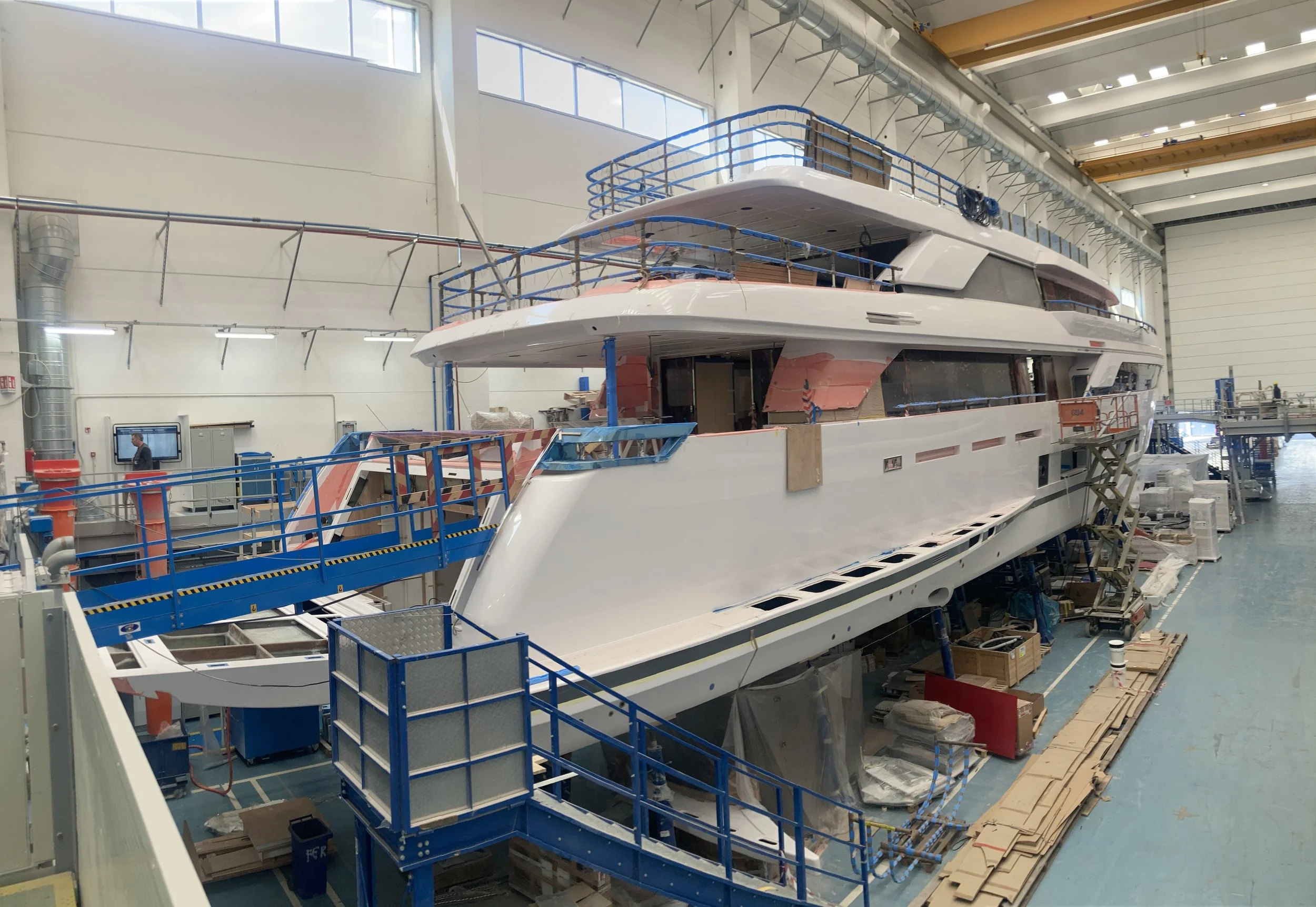 • The outfitting is taking place at the Custom Line/Ferretti facilities in Ancona.