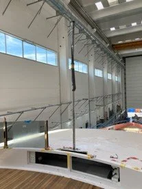 •Transom door is now in place, and the piston and full mechanism of hinges are being installed and tested,