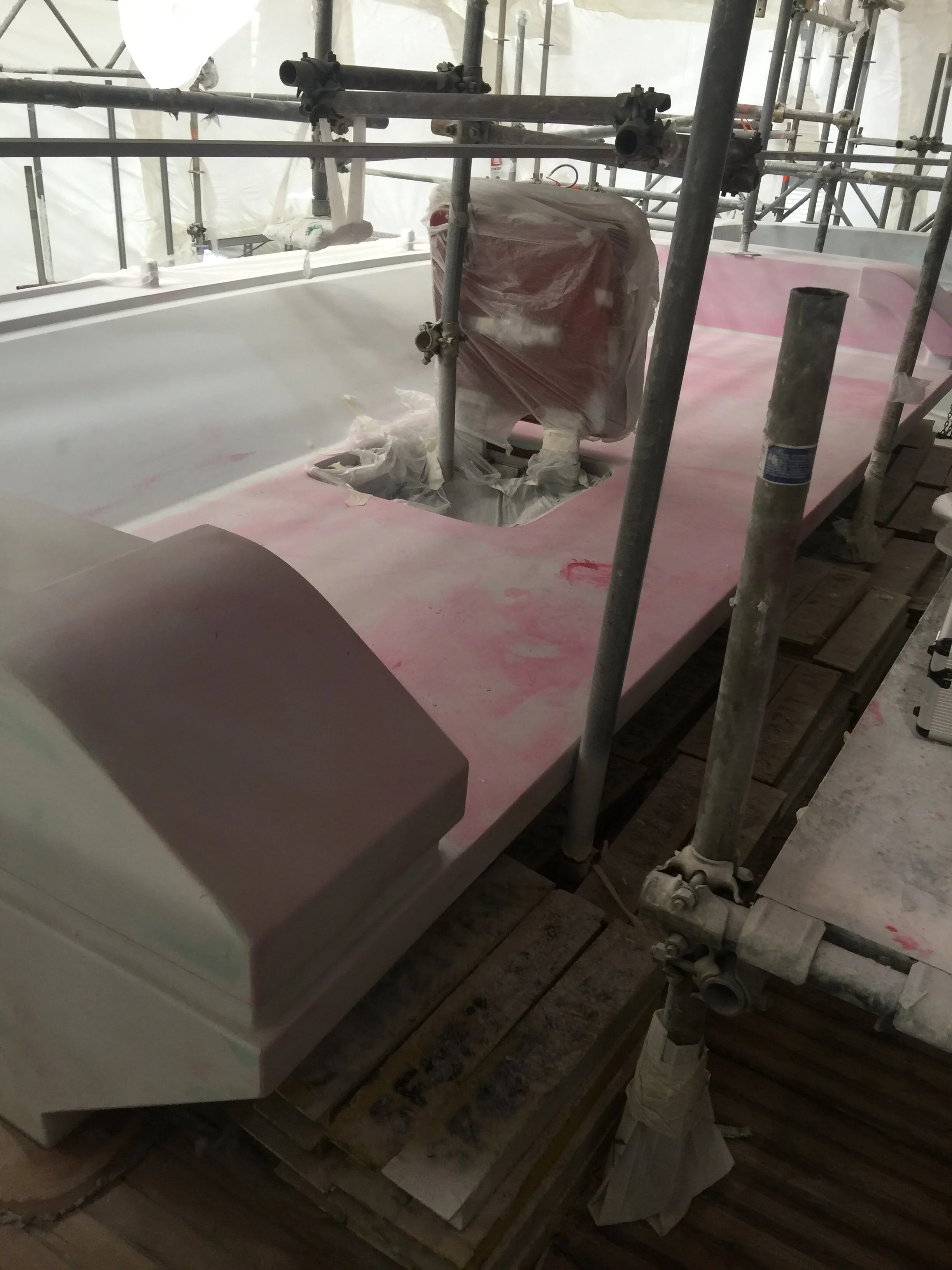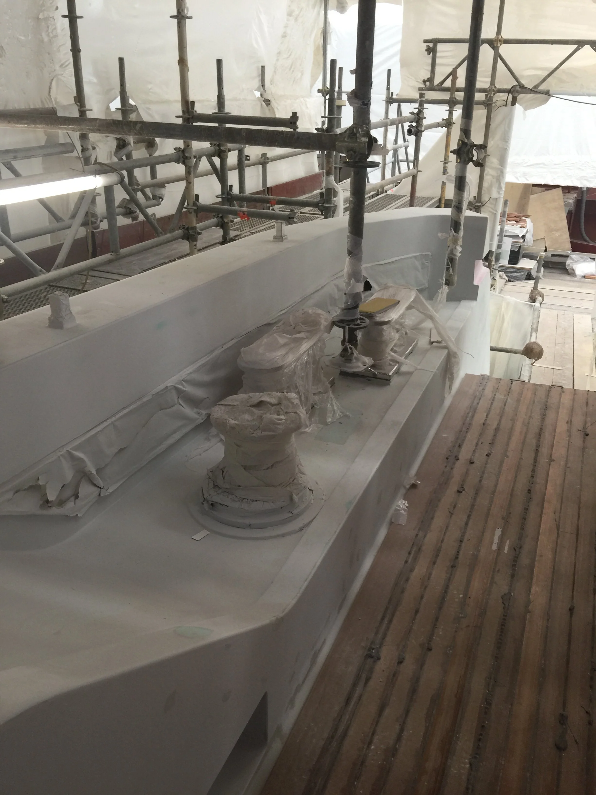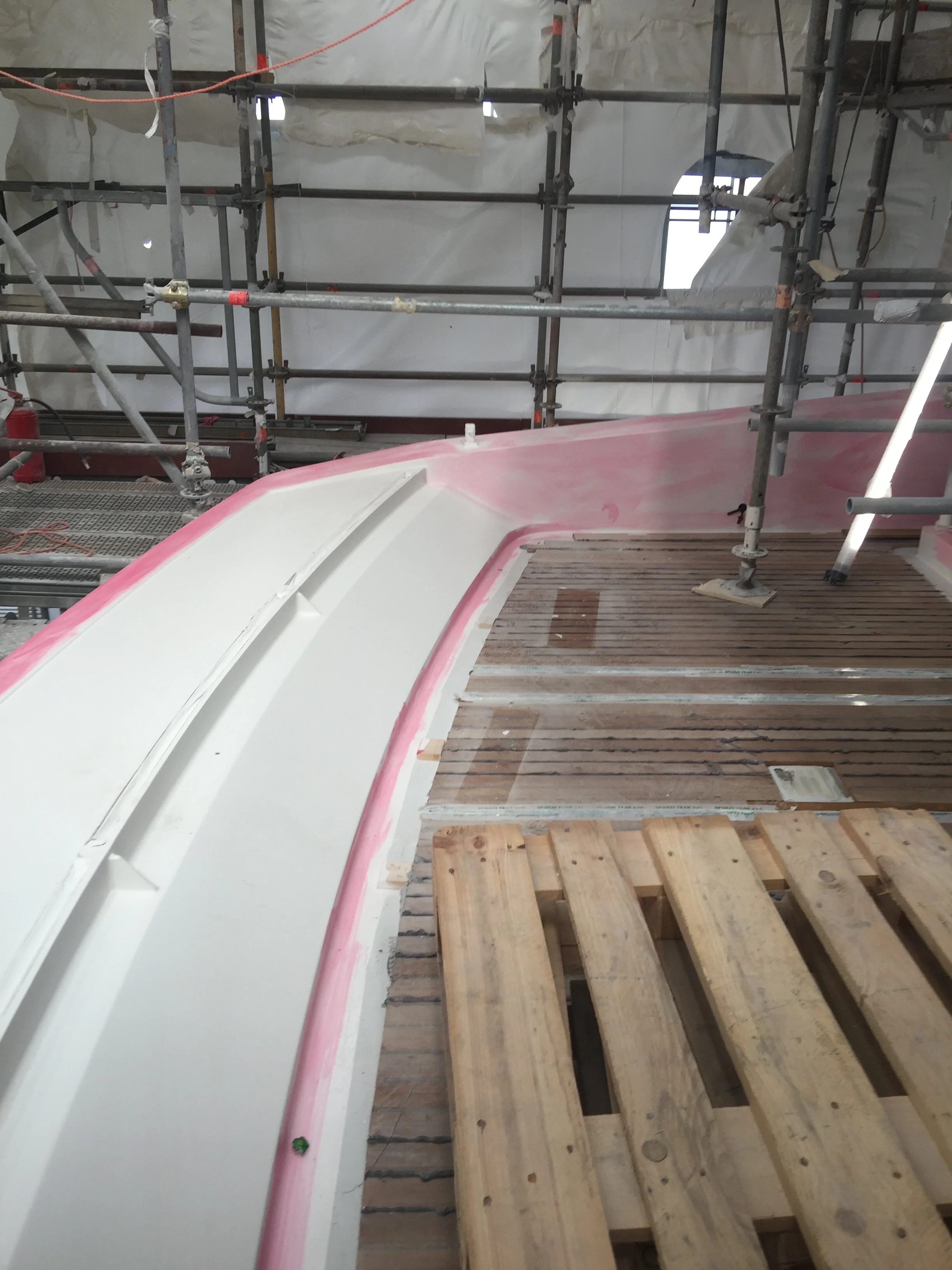 Sundeck glass on aft installed, primer paint applied