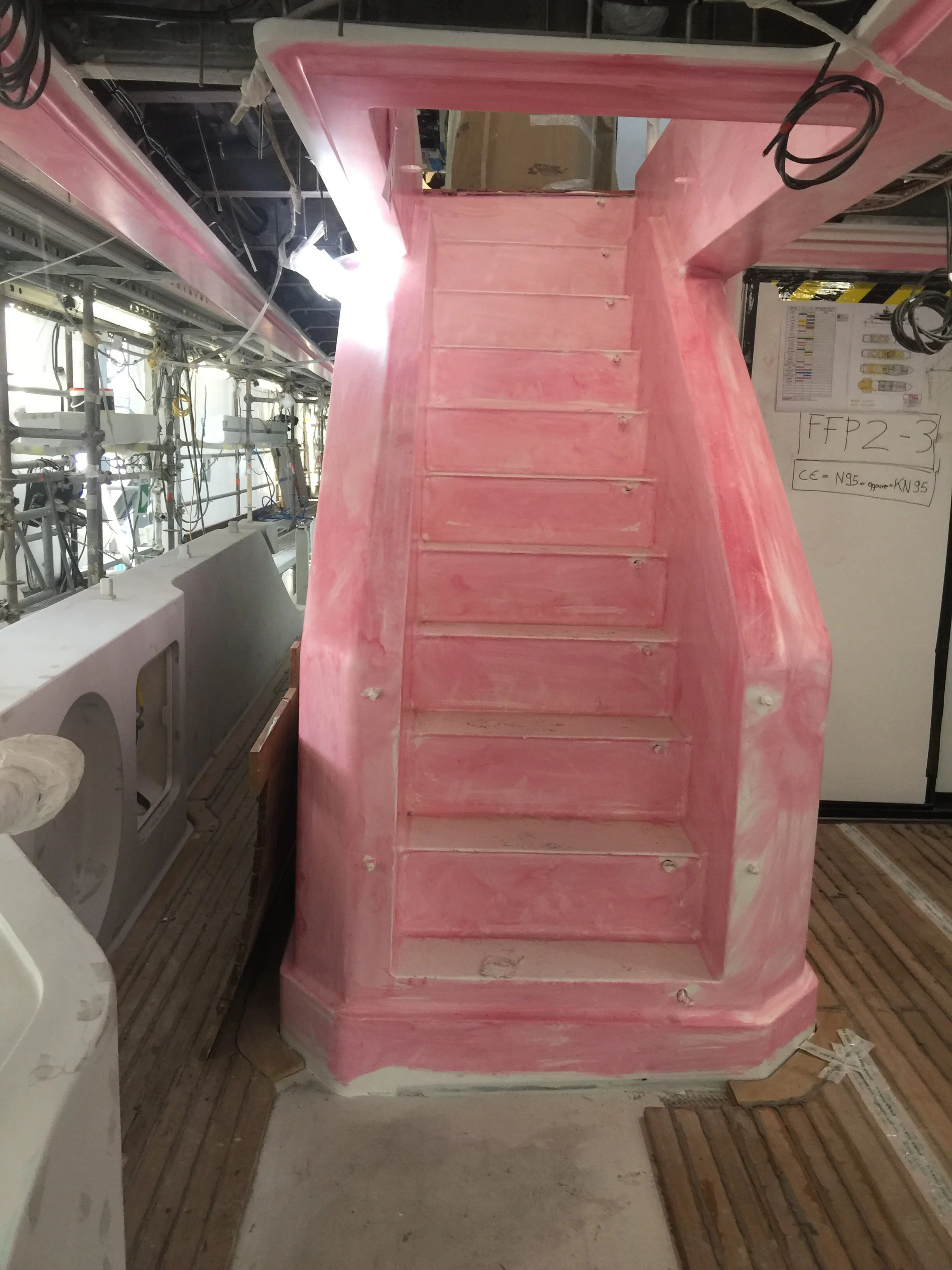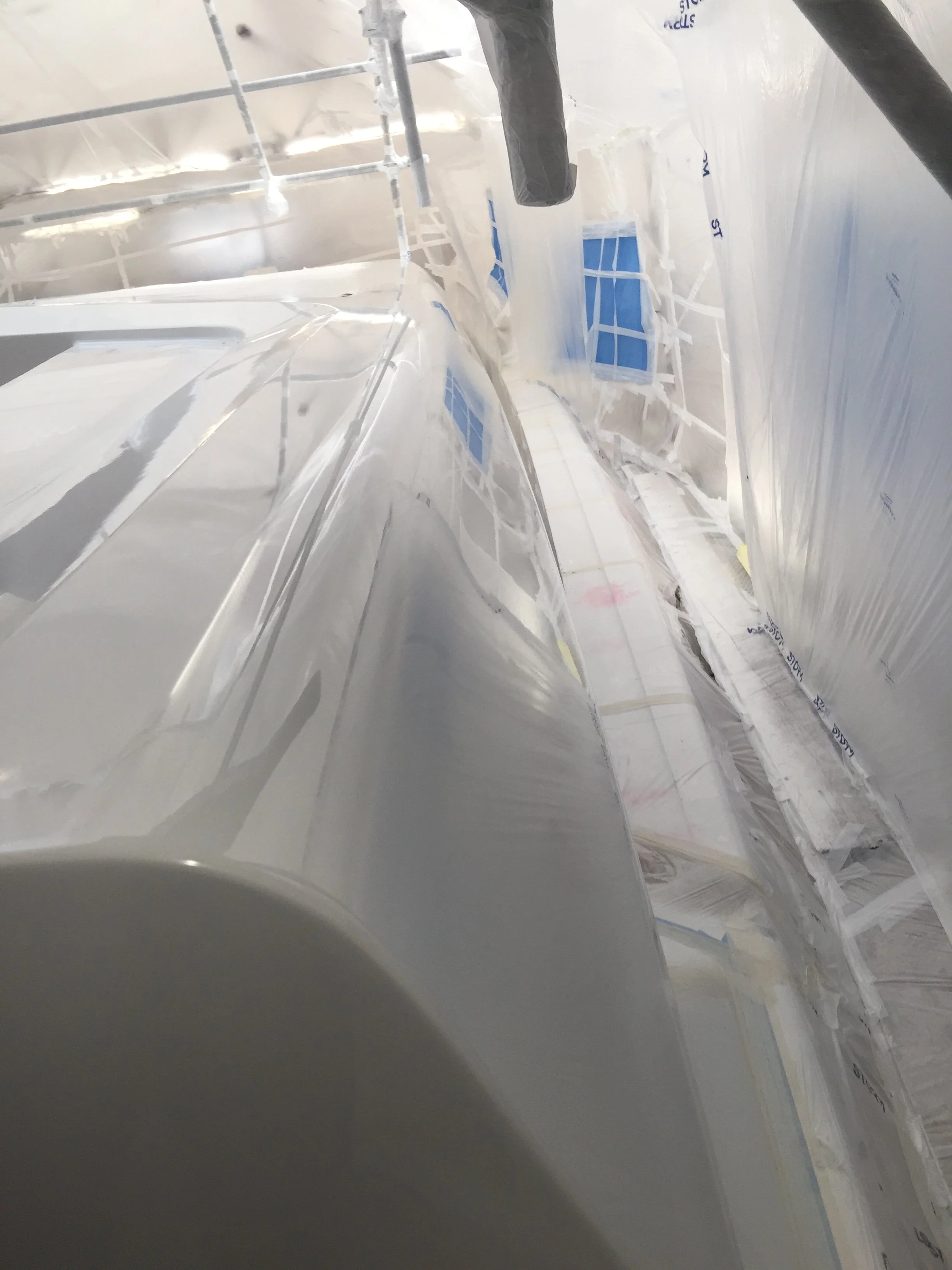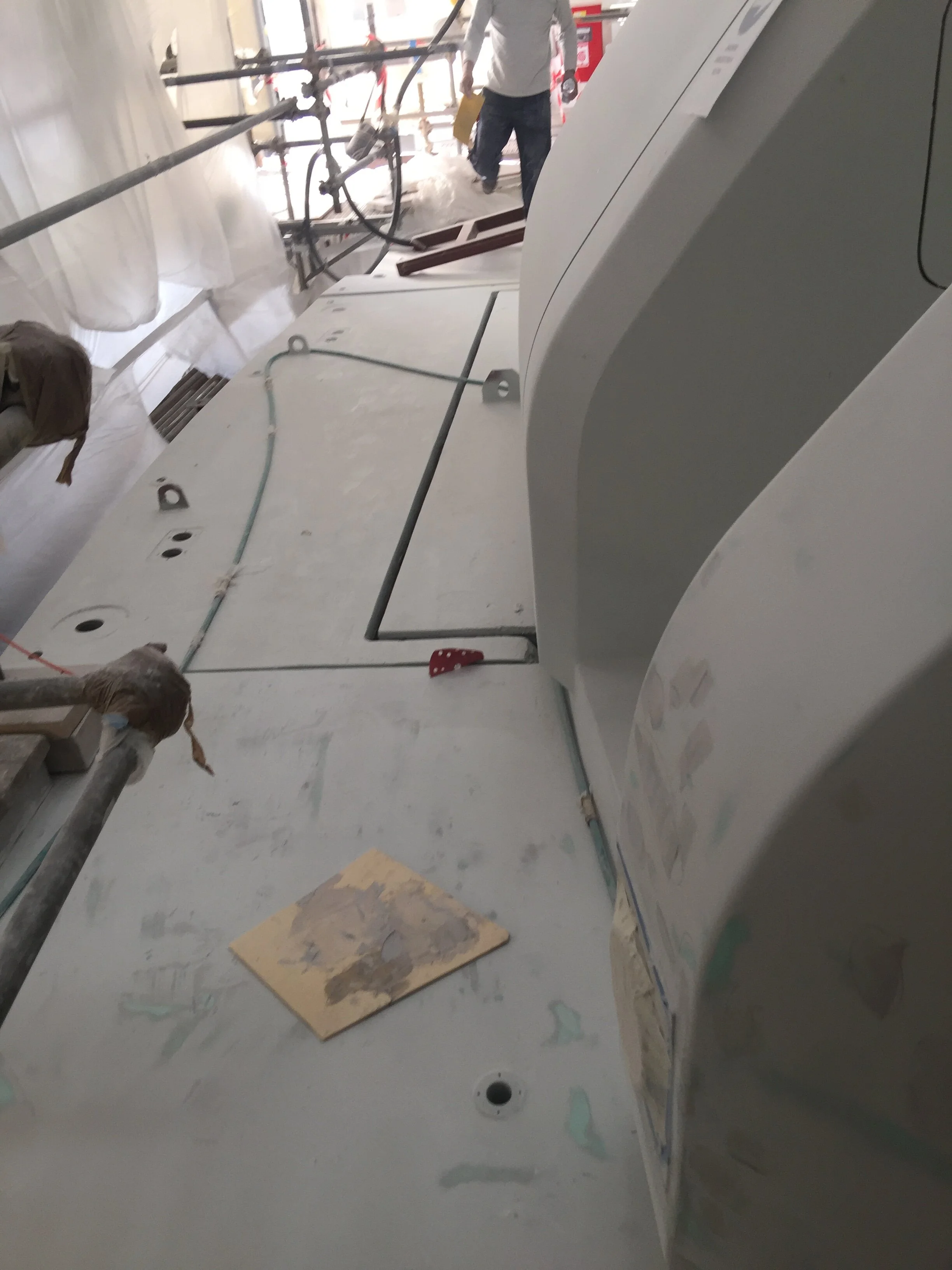 Sundeck glass on aft installed, primer paint applied