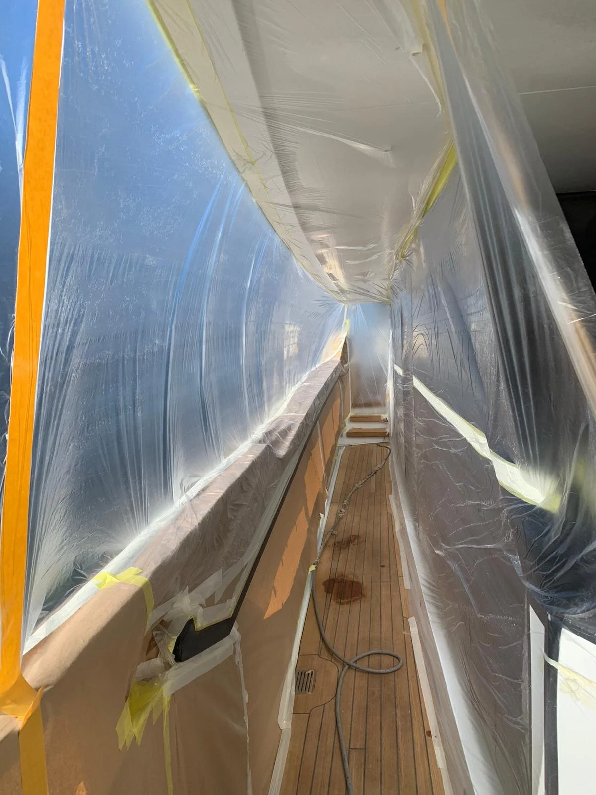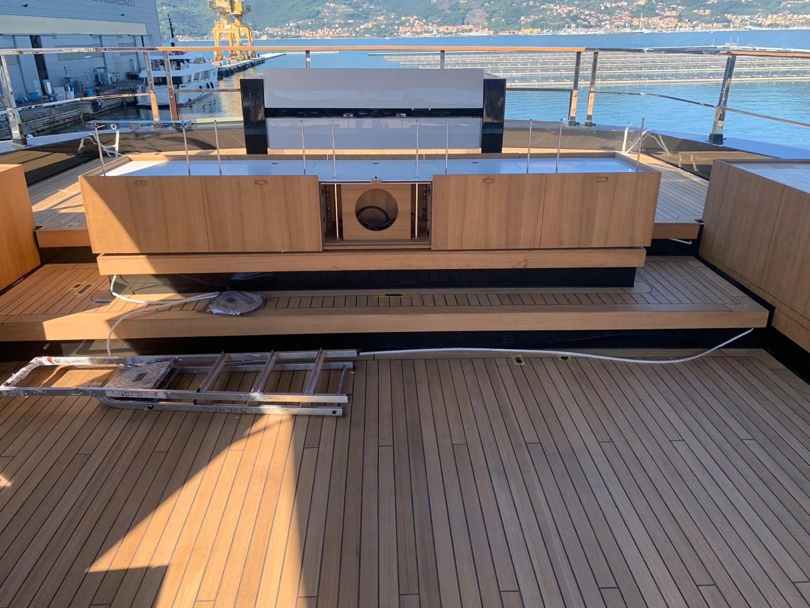 Teak inserts on the aft decks is underway