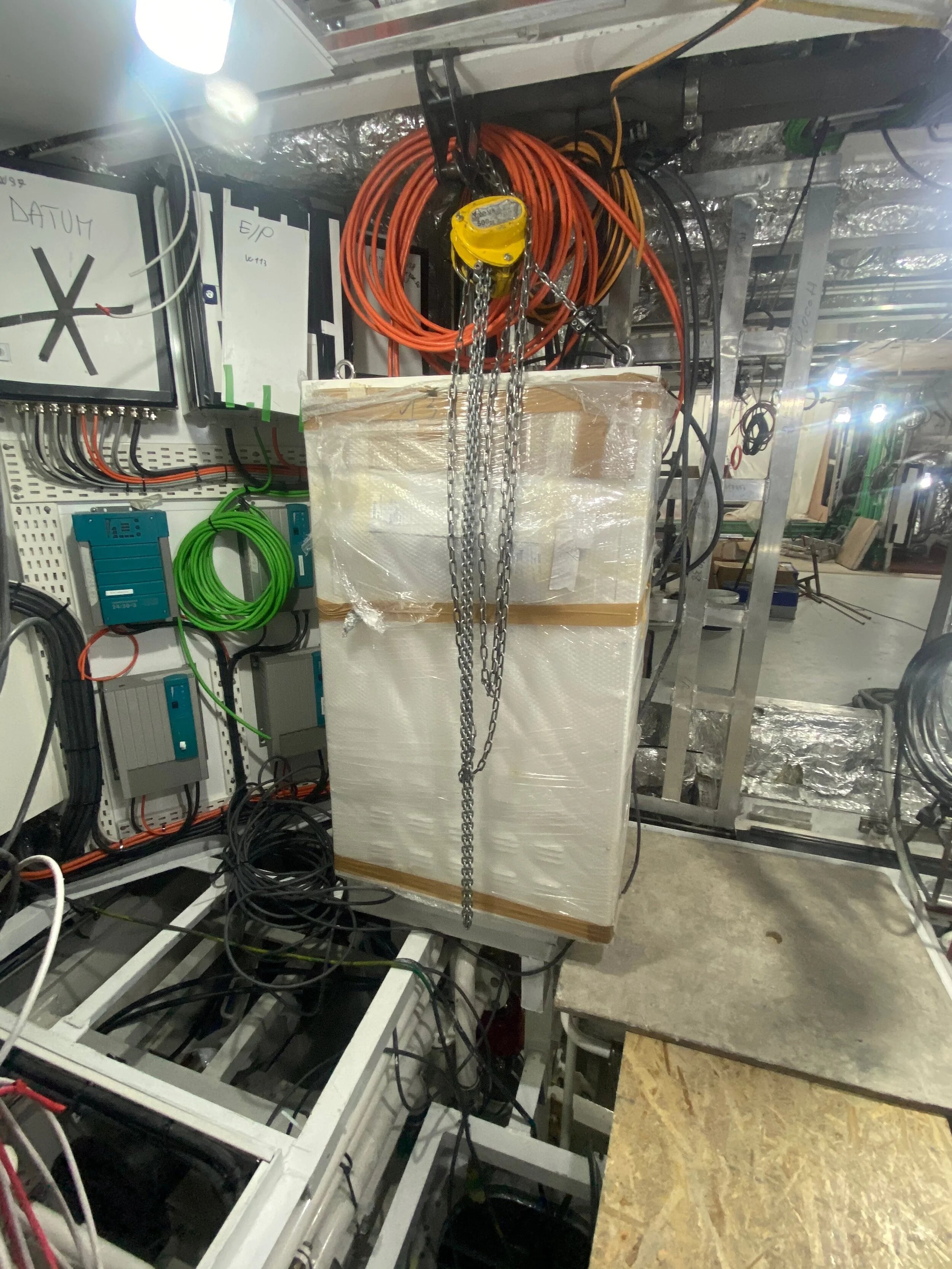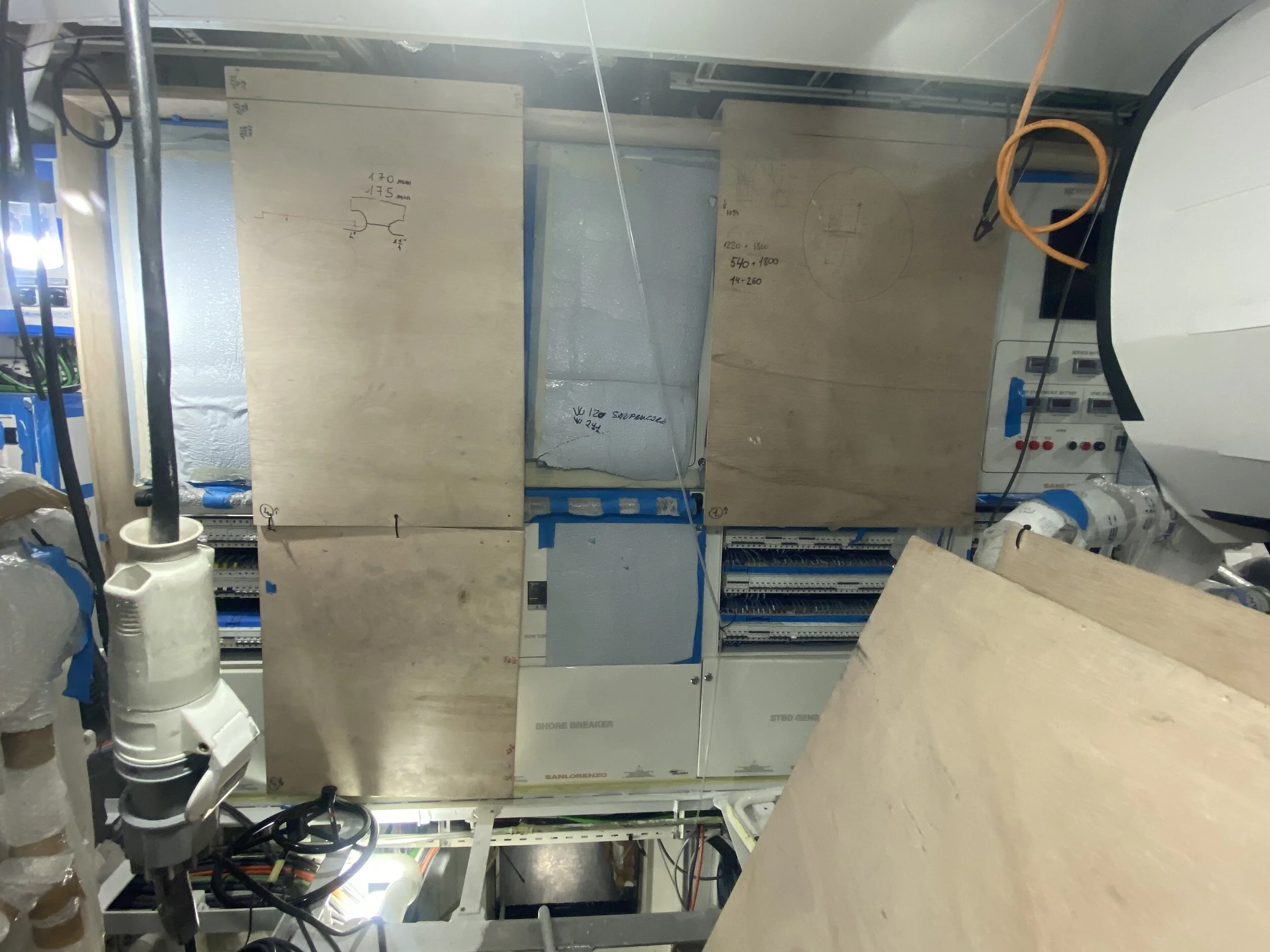 Shore power converter onboard but not securely fitted. Working with yard to confirm correct spec for intended use