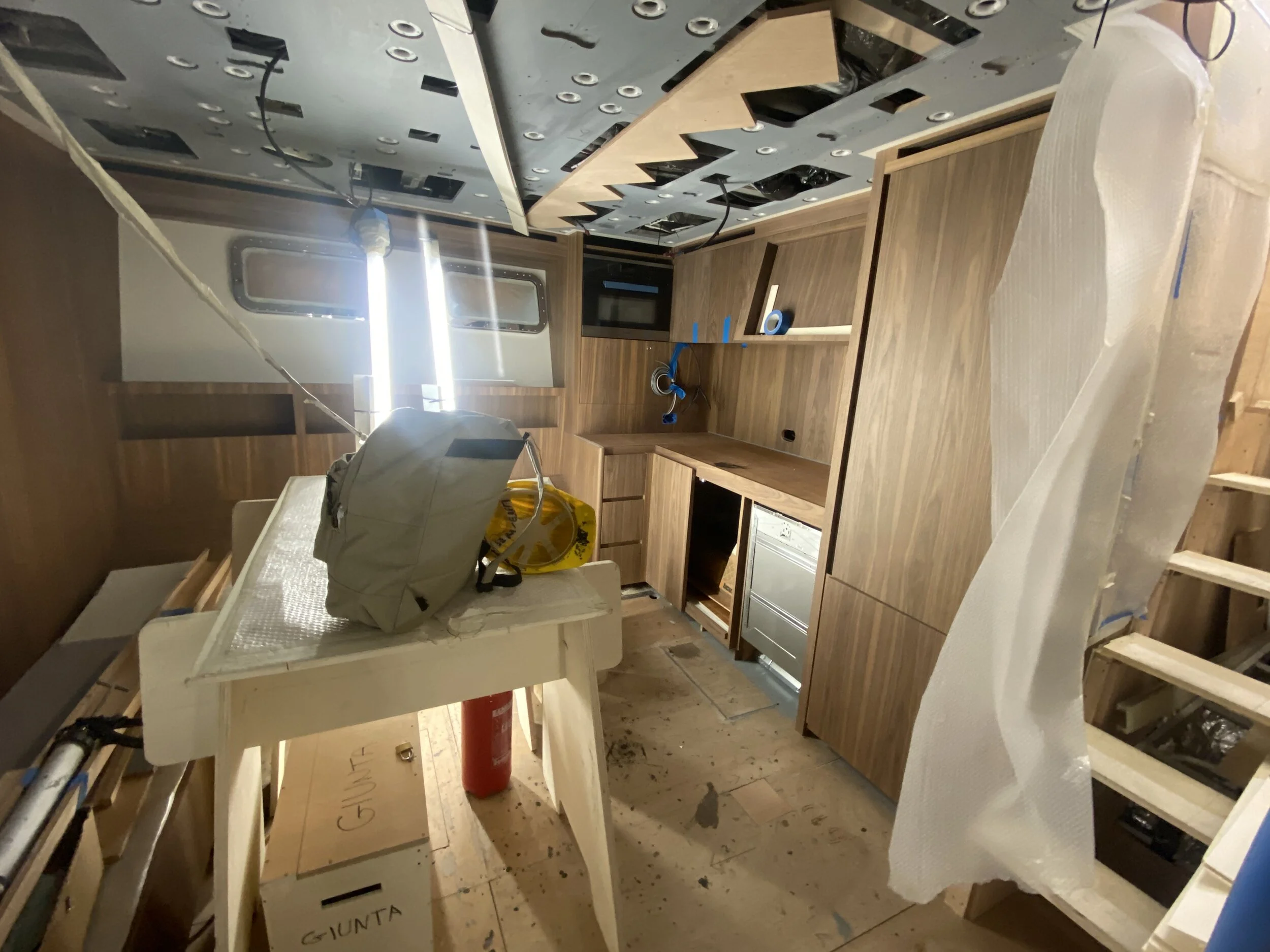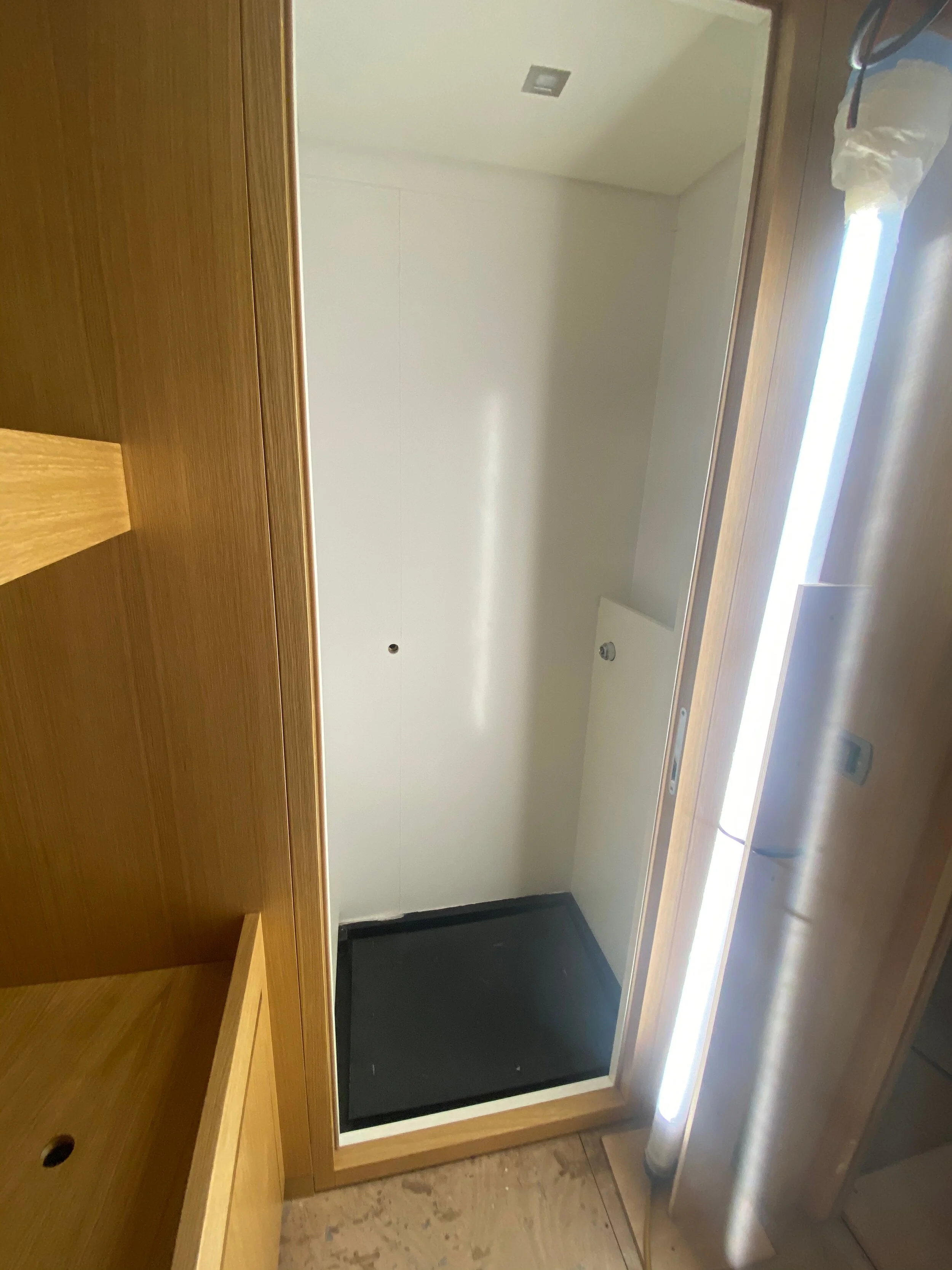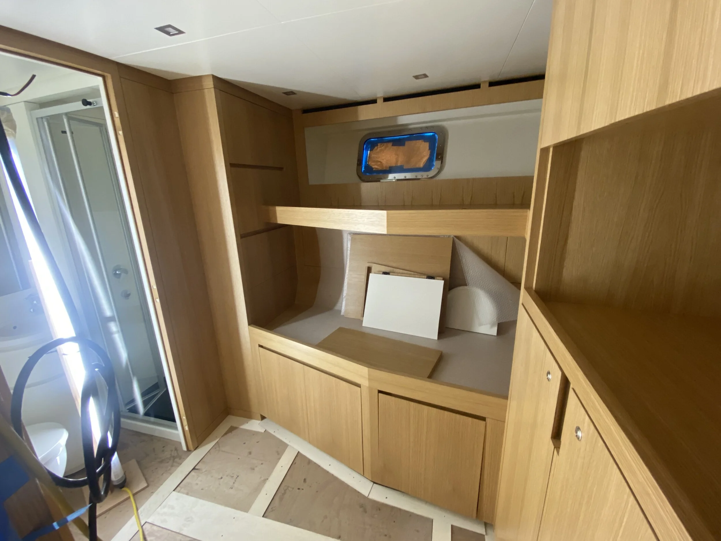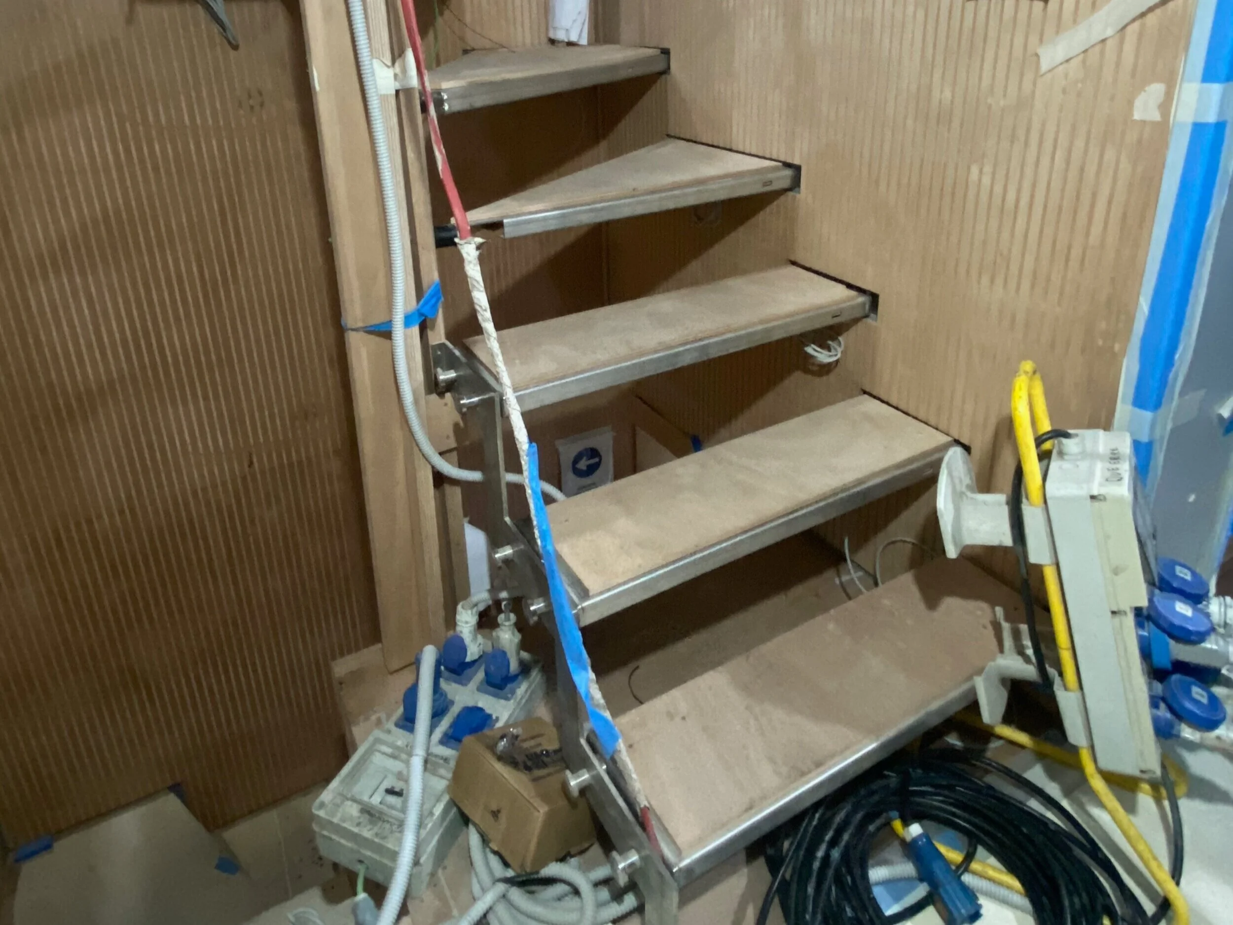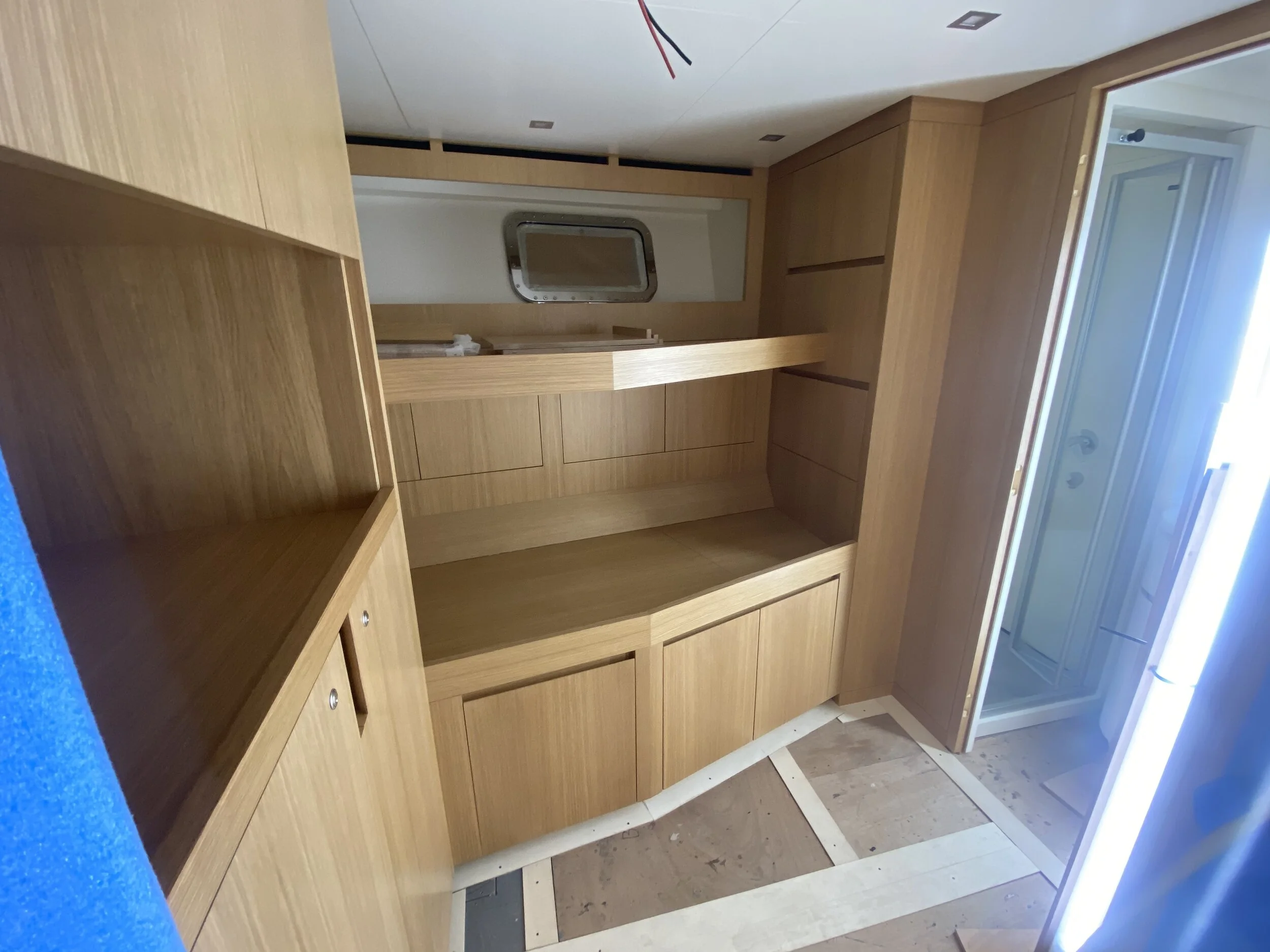 Owners lobby top coat paint in jet black and 2nd stage carpentry
