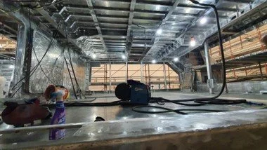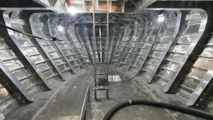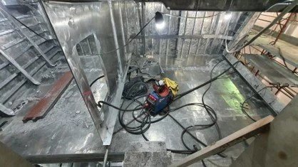 These works have begun in the lower guest spaces and also the most forward collision bulkhead.