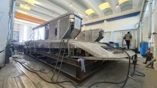 The large opening in the Main Deck will now be closed and the Main Salon house block can be installed and welded into position.