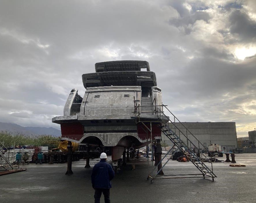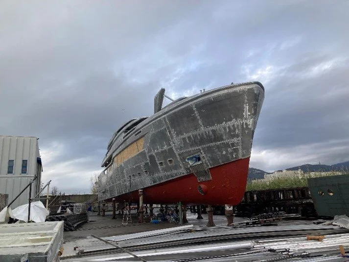 beginnings of a superyacht through much outfitting,