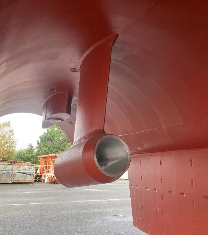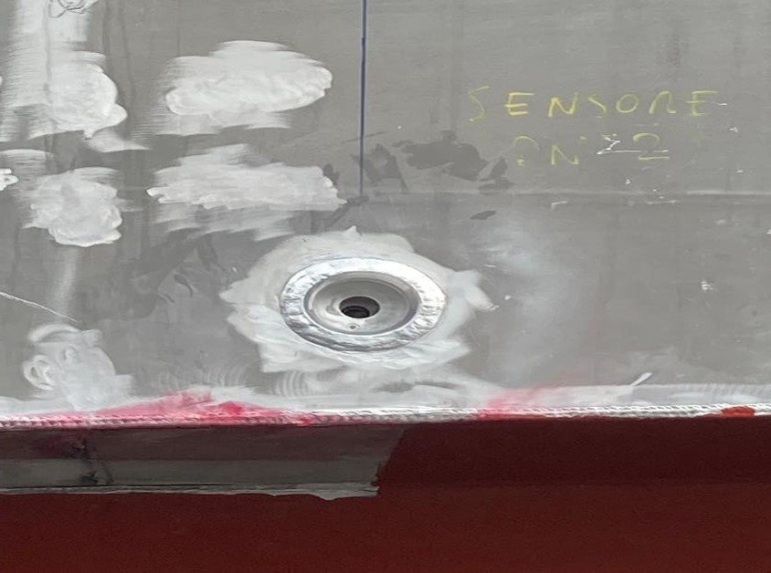 Below: Doppler log and sounding transducer holes.