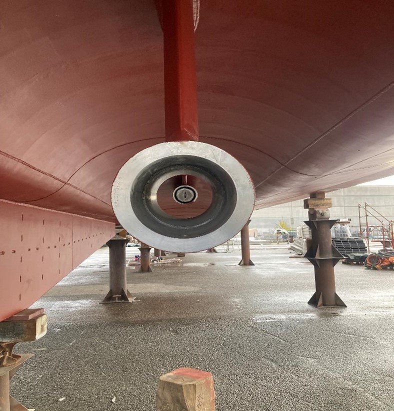 PORT AND STARBOARD ASPECT OF THE VESSEL ON THE BLOCKS