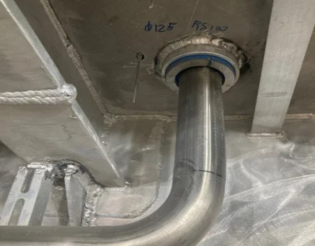 BELOW IS AN IMAGE OF THE EMERGENCY BILGE PIPES IN INOX.