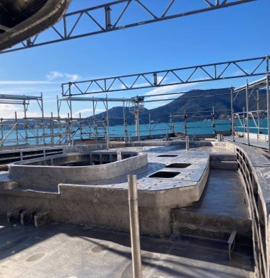 The Vessel is now blocked and in position on the Shipyard floor in the San Lorenzo production facility.