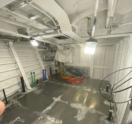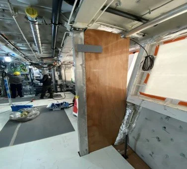 Metal works and frame installation is constant throughout the ER and bilge areas and technical lower deck tunnel-This is ongoing over the following months.