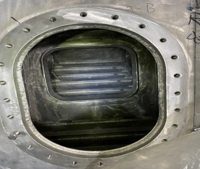 BELOW: MANHOLE ACCESS MID-SHIPS FUEL TANK.