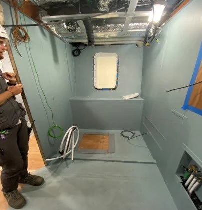 • The engine room has had the Naiad stabiliser HPU (hydraulic power unit) installed.
