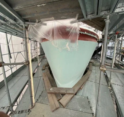 View of the Transom from the scaffold.