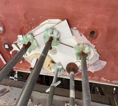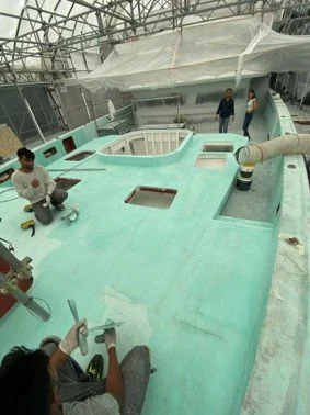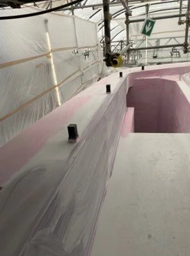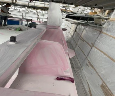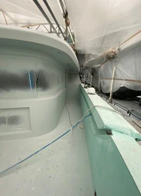 • Progress in filler and undercoating on the exterior deck areas.