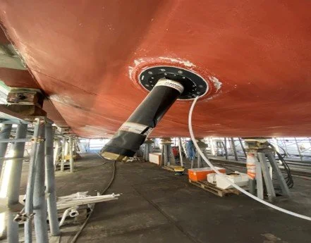 Naiad stabilizer fin shaft in place.